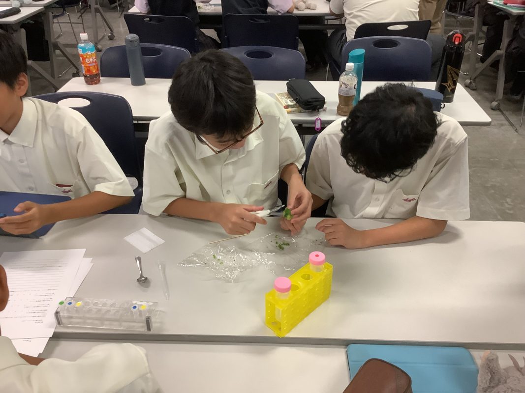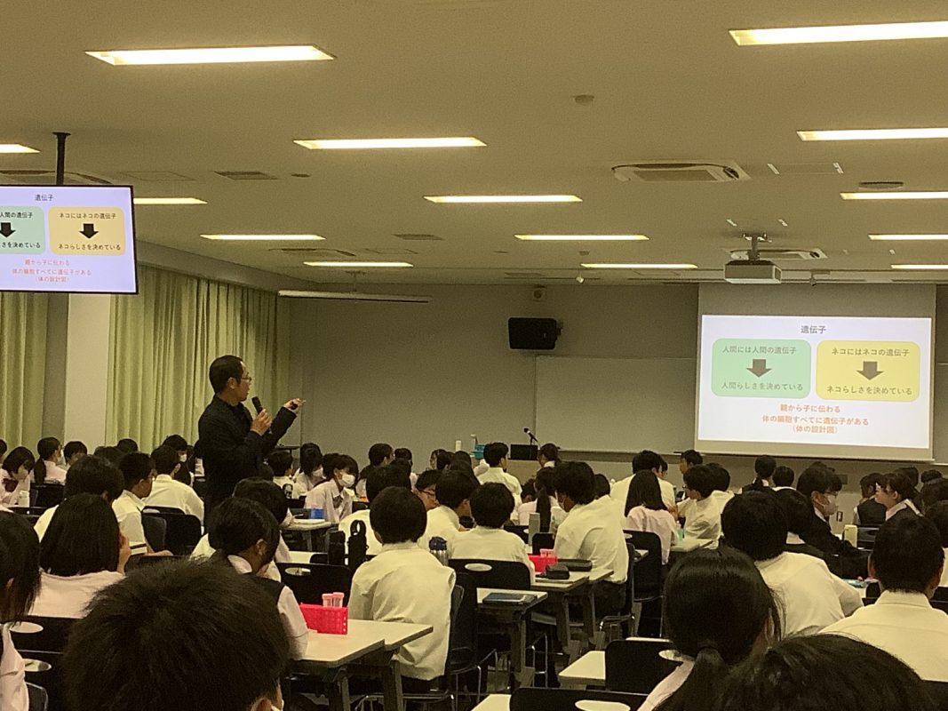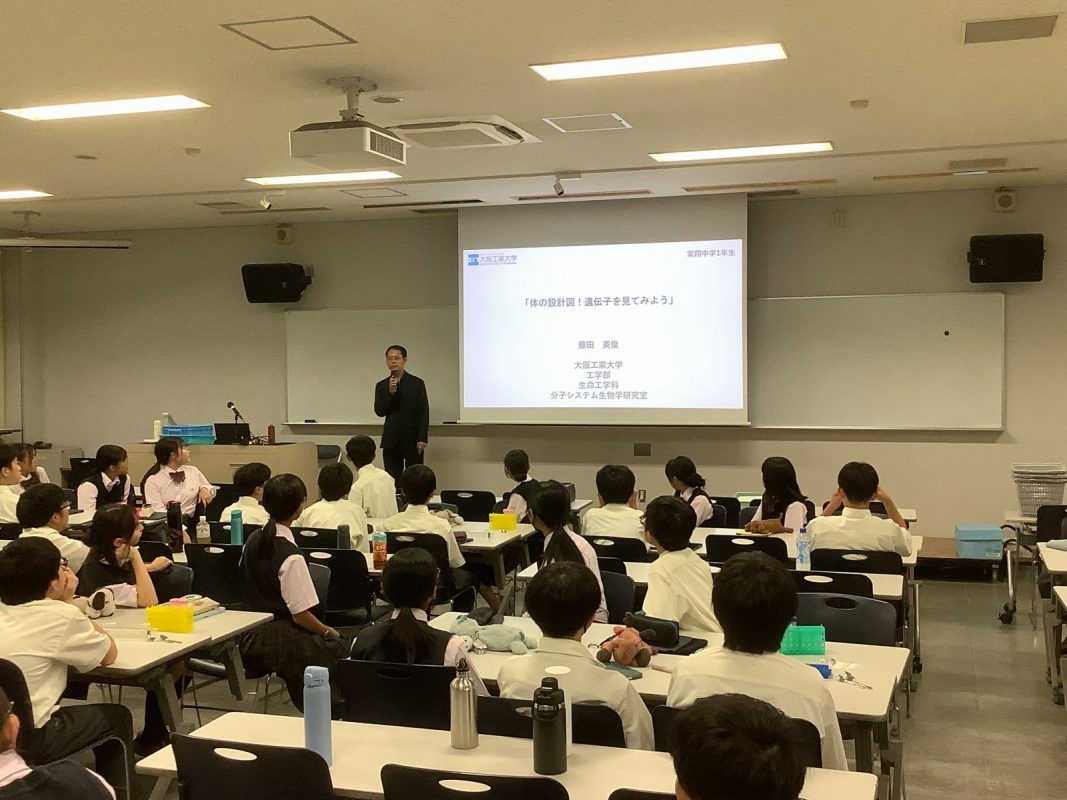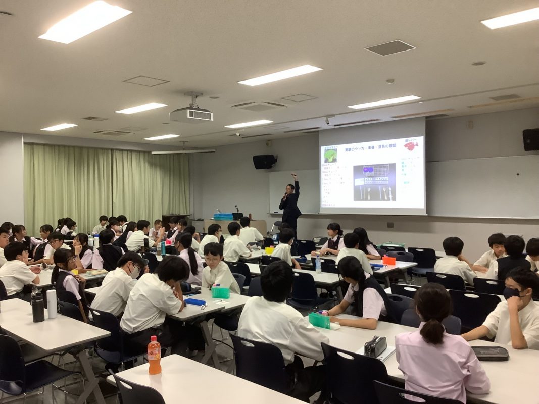 2025年9月29日(月)大阪工業大学工学部生命工学科 分子システム生物学研究室 藤田英俊先生にお越しいただき,『生命の設計図,遺伝子を見てみよう』というテーマで,遺伝子を抽出する実験を行いました。ブロッコリーからの遺伝子抽出、鶏レバーからの遺伝子抽出でした。遺伝子DNAが上手に見えたグループ,実験があまり上手くいかなかったグループなどさまざまでした。実験に興味を持ち,生命の不思議を感じる生徒も少しはいたと期待しています。