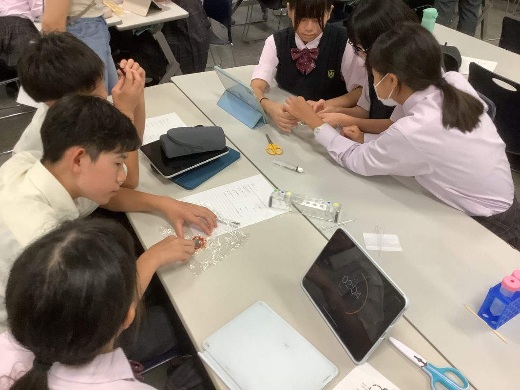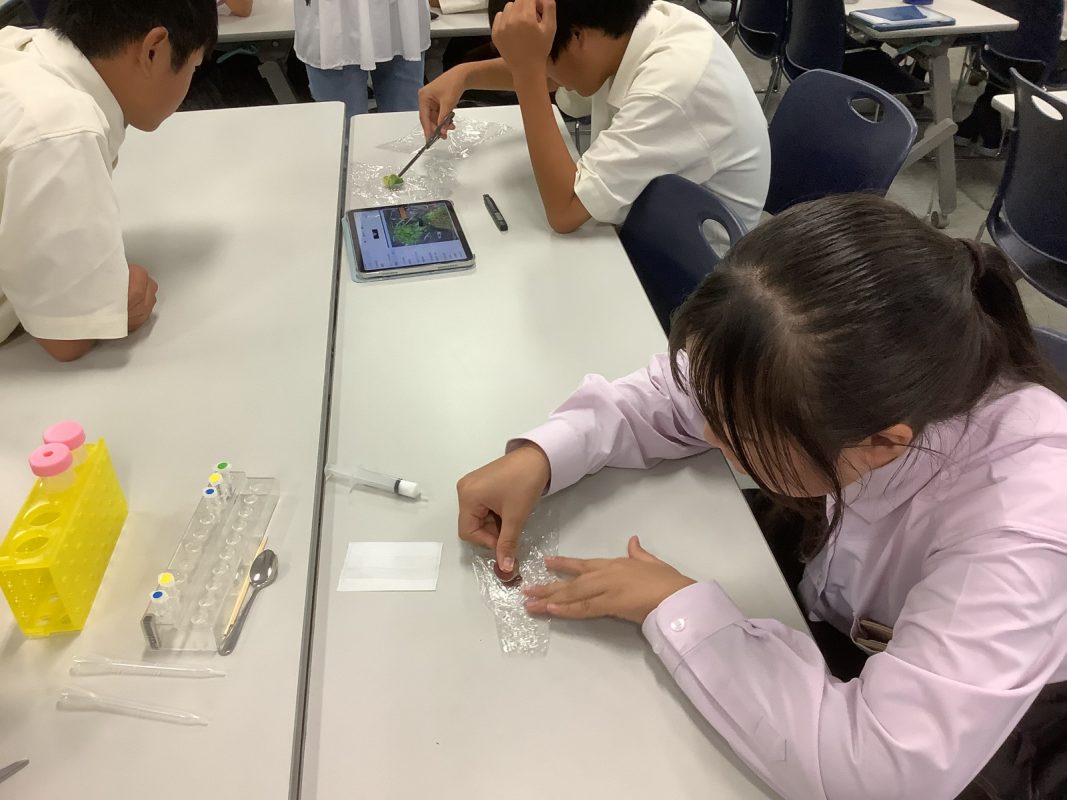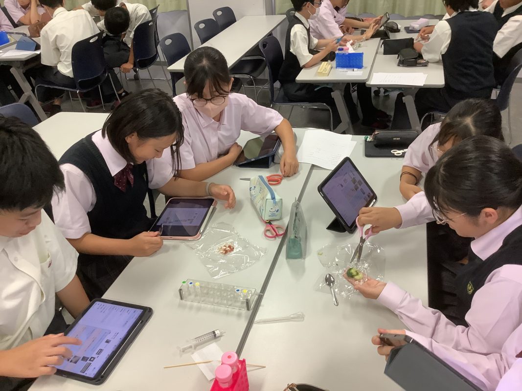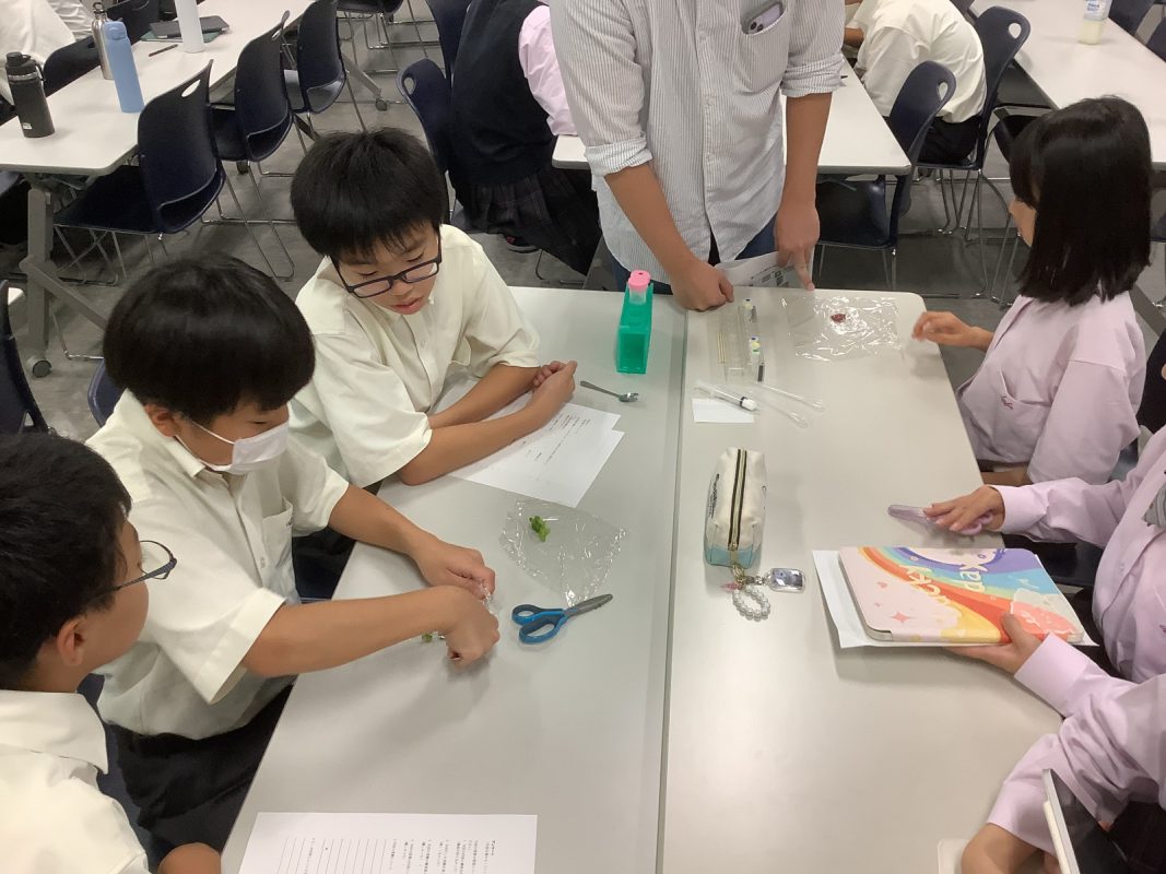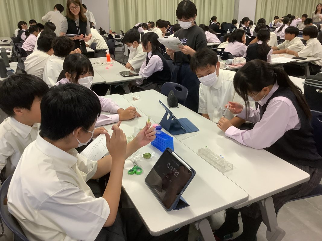 2025年9月29日(月)大阪工業大学工学部生命工学科 分子システム生物学研究室 藤田英俊先生にお越しいただき,『生命の設計図,遺伝子を見てみよう』というテーマで,遺伝子を抽出する実験を行いました。ブロッコリーからの遺伝子抽出、鶏レバーからの遺伝子抽出でした。遺伝子DNAが上手に見えたグループ,実験があまり上手くいかなかったグループなどさまざまでした。実験に興味を持ち,生命の不思議を感じる生徒も少しはいたと期待しています。