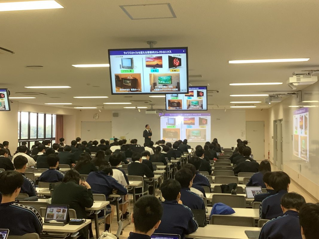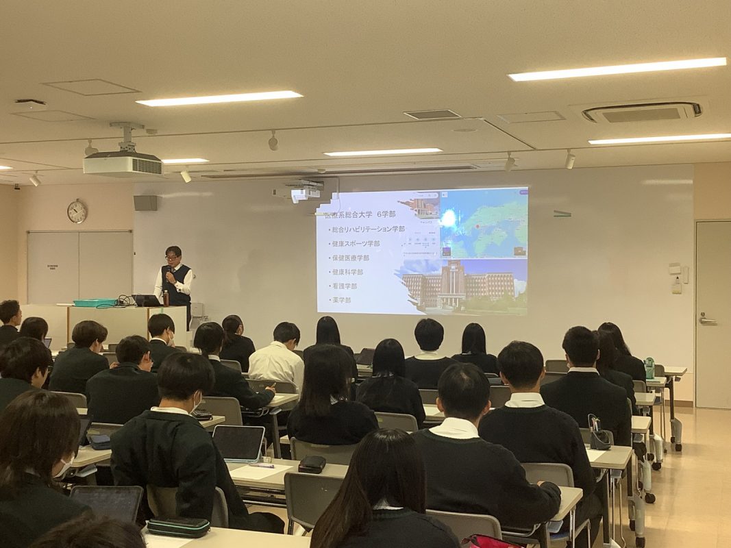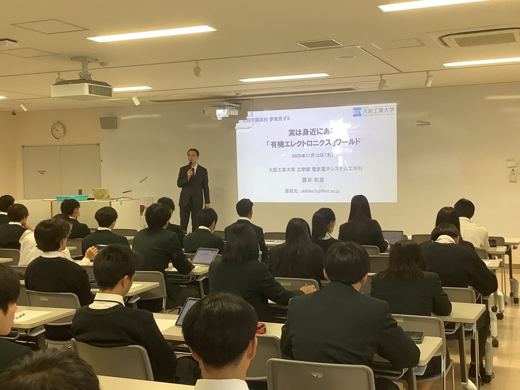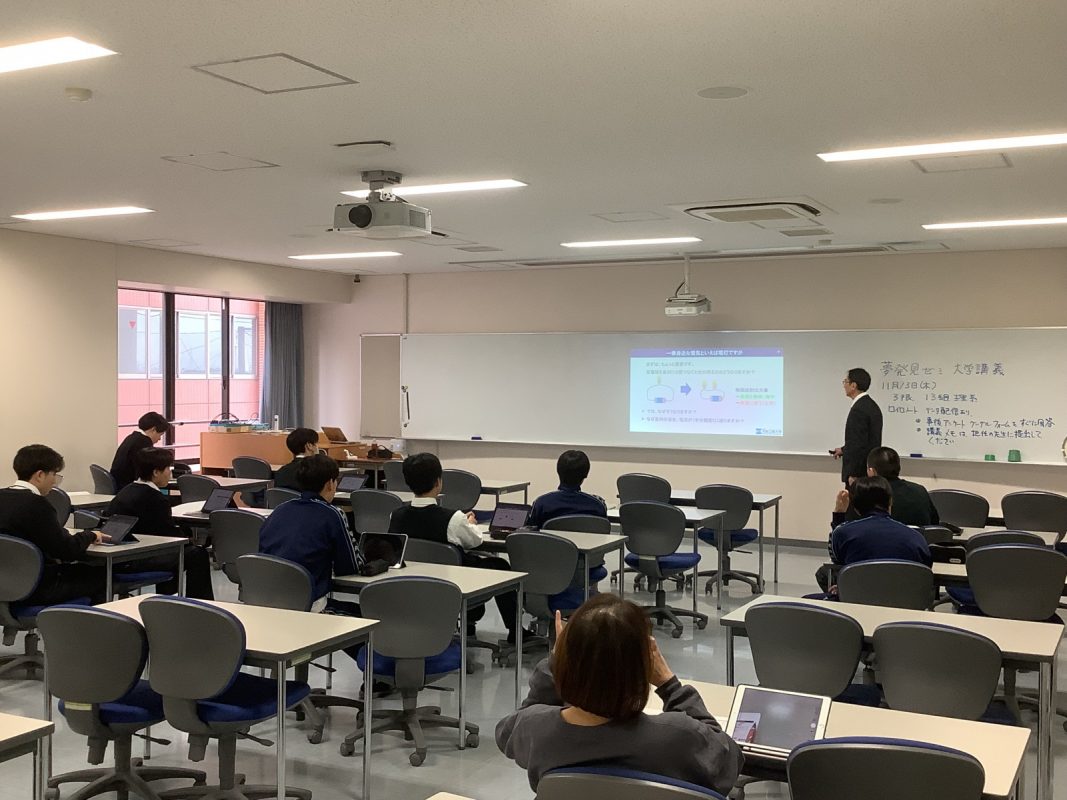 2025年11月13日(木)2限理系クラス,3限4限文系クラスが学園内大学の先生の大学講義を受ける講座がスタートしました。本日、理系クラスの担当は大阪工業大学工学部電気電子システム学科藤井彰彦先生,文系クラスの担当は広島国際大学総合リハビリテーション学部リハビリテーション学科義肢装具学専攻 山田哲生先生でした。学園内大学への進学の参考にしてもらえればと思っています。特進の理系クラスも合流しました。本日から6回は文理コース理系の時間に合流します。