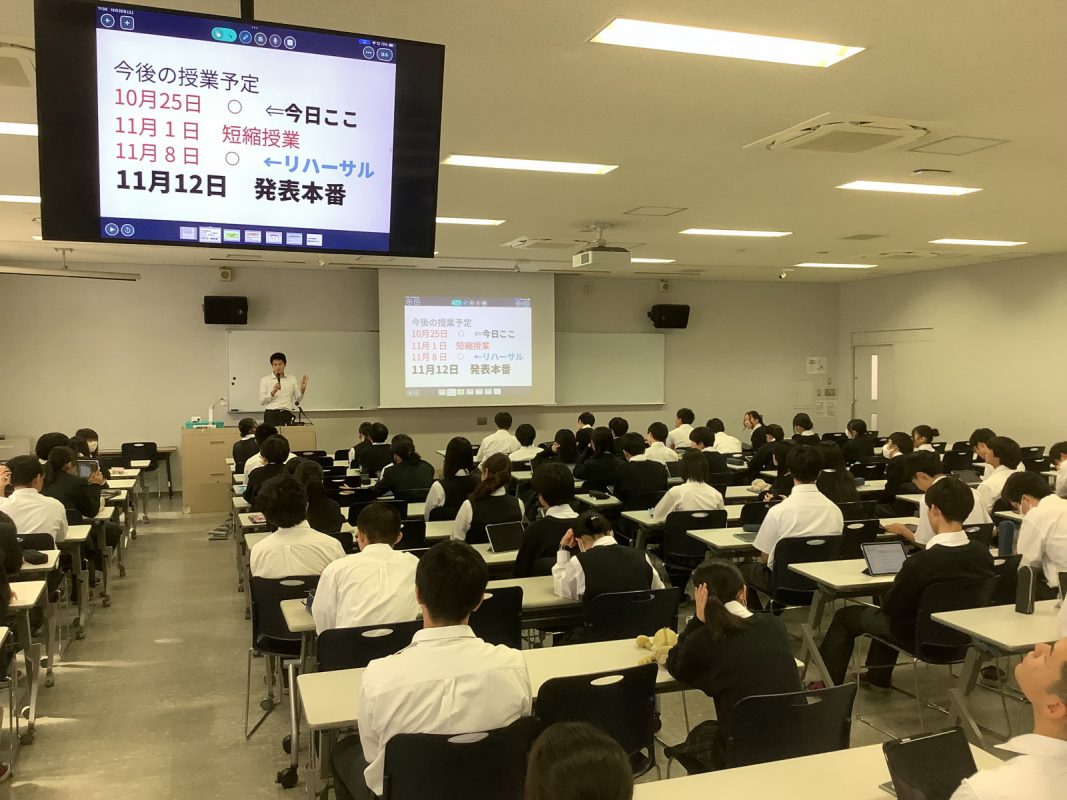 生徒たちは、11月の発表に向けてチームごとにスライドの作成に取り組みました。