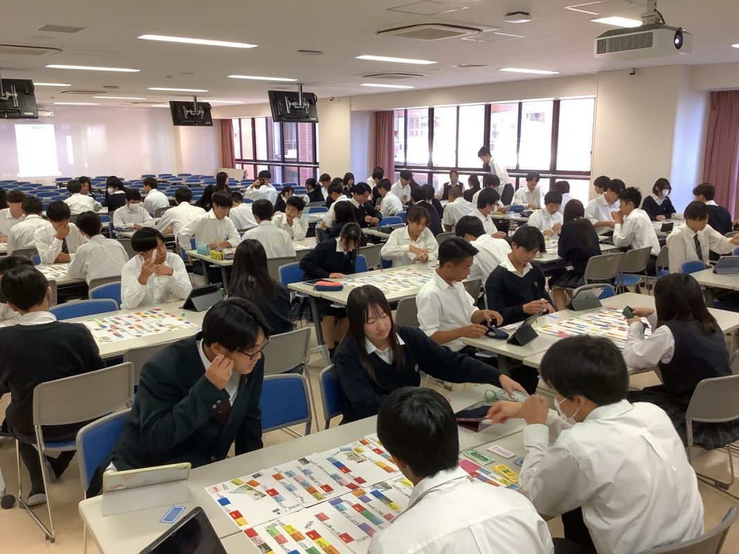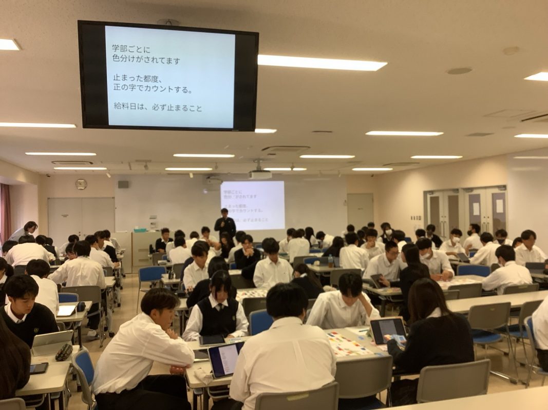 2025年10月23日(木)次回から大学講義6回がスタートしますが, 今回は,夢発見ゼミ担当者オリジナルの人生ゲームで,将来の学部を決めていくという 遊び感覚で,人生を経験してみるオリジナルすごろくを実施しました。使われる現金カードも 学園内大学のロゴが使われており,かなり本格的に遊べるゲームです。 ゲームで学部を決めるわけにはいかないですが,自分に興味がない学部にも目がいくチャンス だと思います。