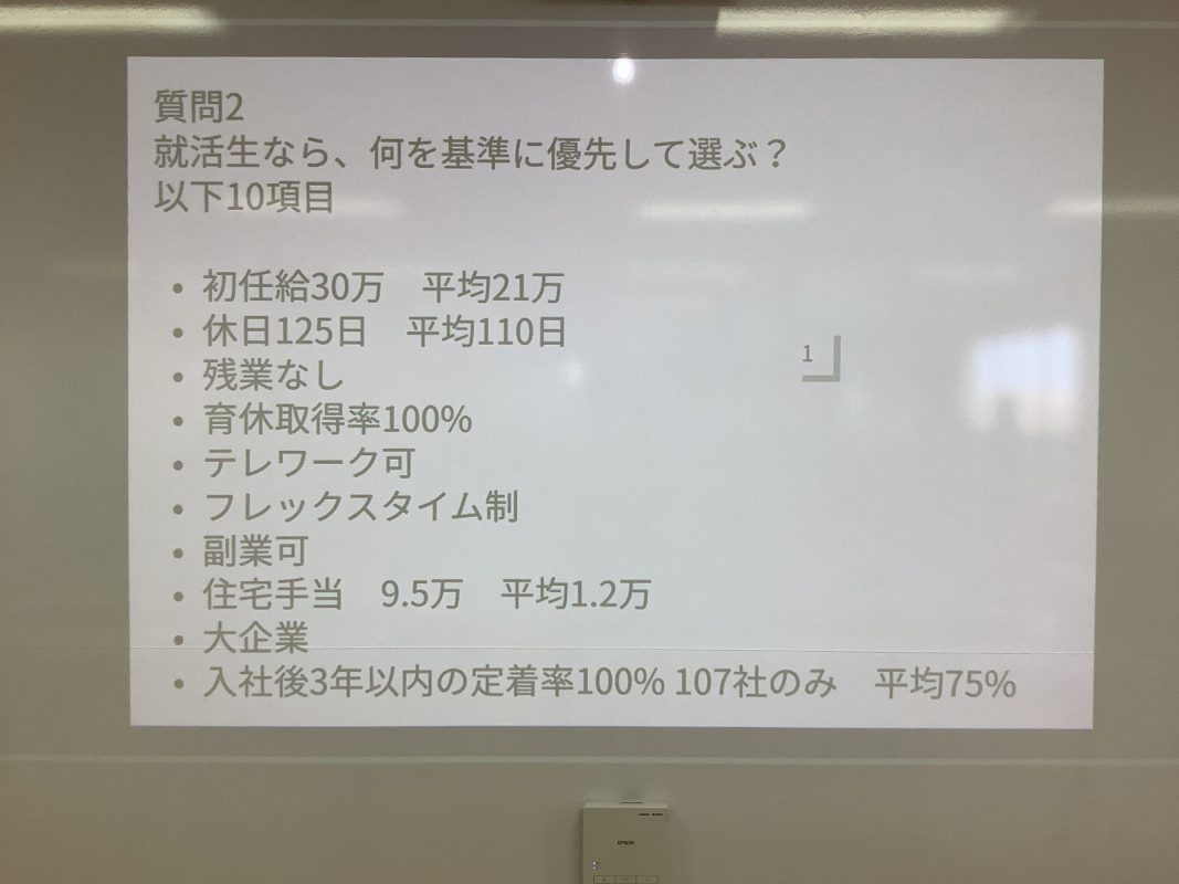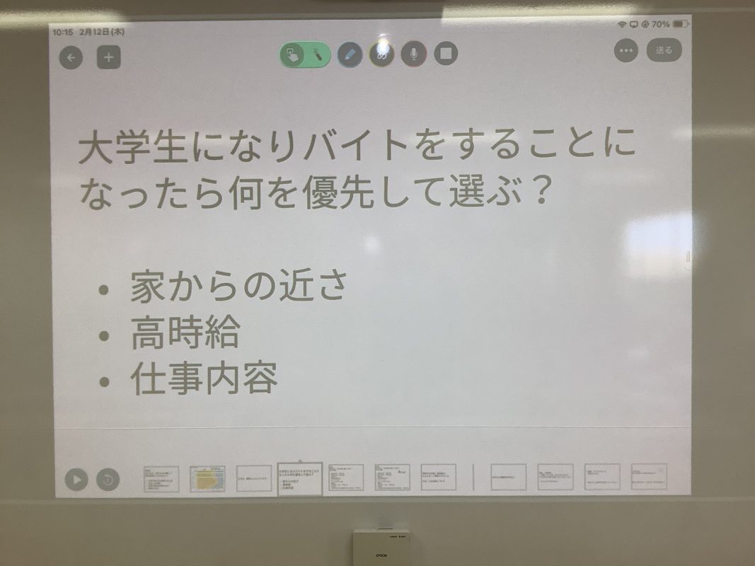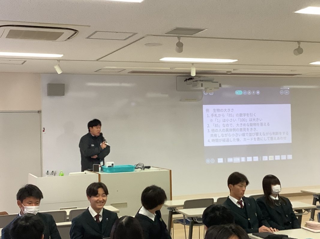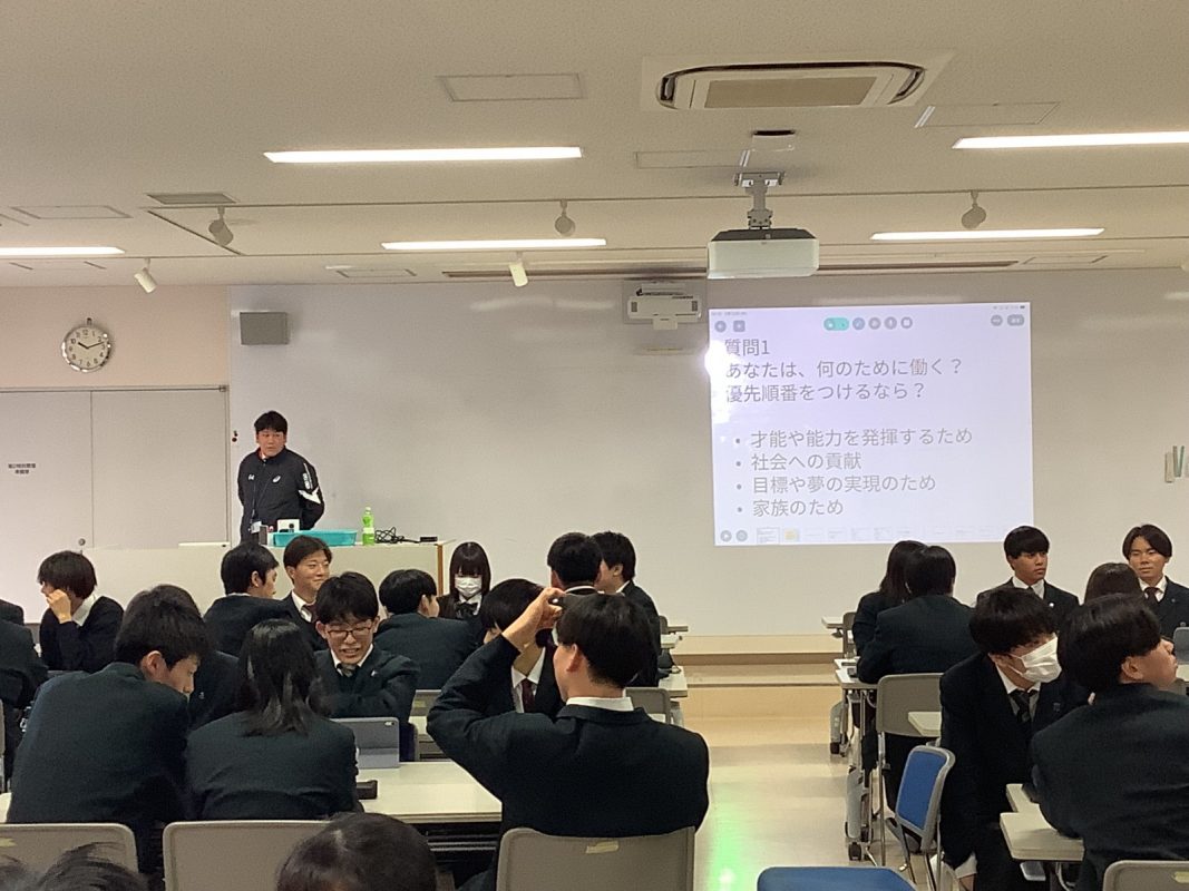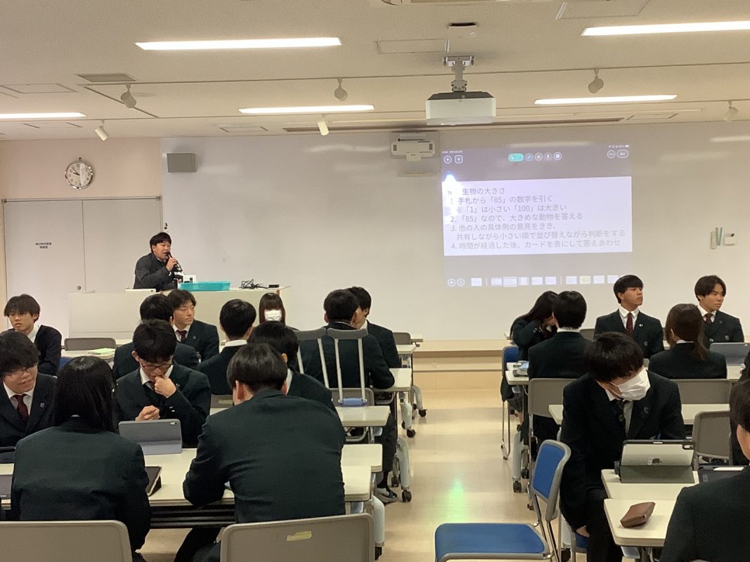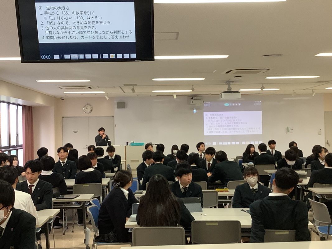 2026年2月12日(木)は,夢発見ゼミの年間のラストの授業でした。『自分の仕事の価値観の共有』を行いました。その前にアイスブレイクで,グループで数字のカードを並べるゲームを行いました。お題をもらって,グループでカードを数字順に並べるということをやりました。その後は,『何のために働くのか』を考えてみました。いろいろグループで相談したり,意見を出したり,楽しく考えていました。
