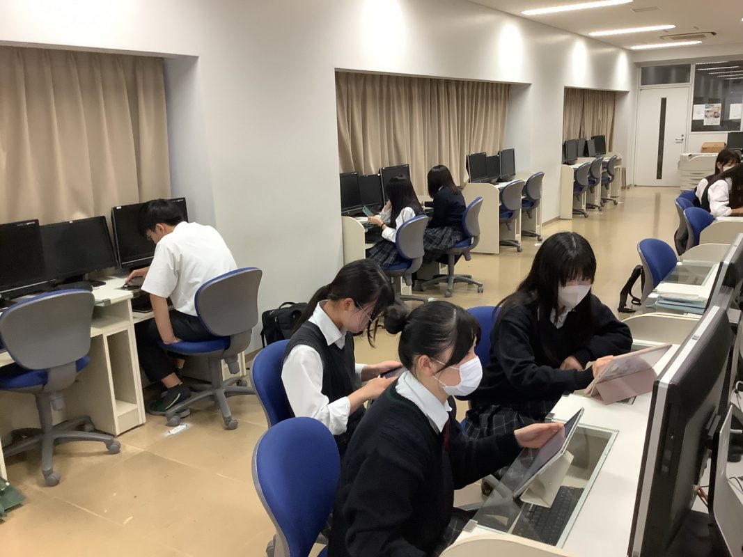 2024年10月8日(火)5限 6限の時間帯に総合的な探究の時間を行いました。3クラス合同で,9つのゼミに分かれています。大学の研究室で行うイノベーションゼミ理系・文系,高校側の教員が中心に行う物理ゼミ,化学ゼミ,生物ゼミ,数理探究ゼミ,情報科学ゼミ,人文科学ゼミ,社会科学ゼミに分かれて,ゼミ活動を行いました。修学旅行で研究発表するメンバーもいるため、第2情報演習室で、コンピューターの作業をやるゼミグループもいました。大学の研究室に行くグループもありました。いよいよ10日からオーストラリアパース修学旅行に出発です。現地では、研究内容のプレゼン発表を行います。以下が本日の様子です。