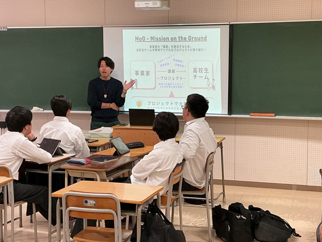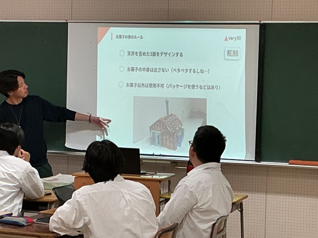2026年4月17日(金)2限にHR教室にて、前回はvery50の谷弘さまにオリエンテーションを行ってもらいました。今日からは、常翔学園担当のMoG研修まで担当してくださいます『そうたさん』が来てくれました。昨年度も担当してくれたので、3年9組の生徒たちとすれ違うと、3年生は懐かしそうに喜んでいました。クイズ等で、アイスブレイクして、そうたさんの様子を知りました。MoG研修の説明を受けながら、新しいことに飛び込む一歩力を育むことを目的にしています。お菓子の家をつくるミッションが出まし