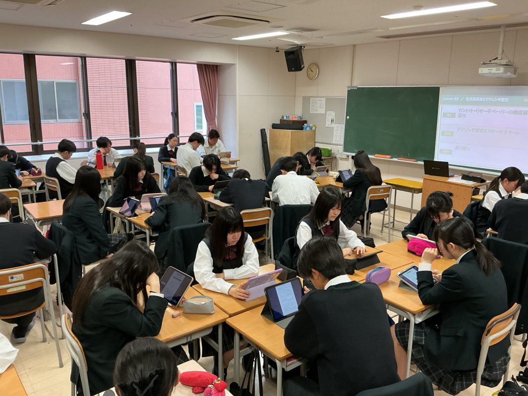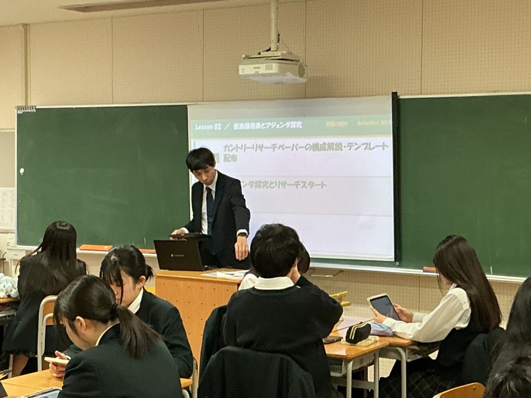 2026年4月24日(金)2限 2回目の授業でした。グループごとに各国の基本情報を調べ学習しました。カントリーリサーチペーパーをまとめるためにiPadを使っていろいろ調べていました。
