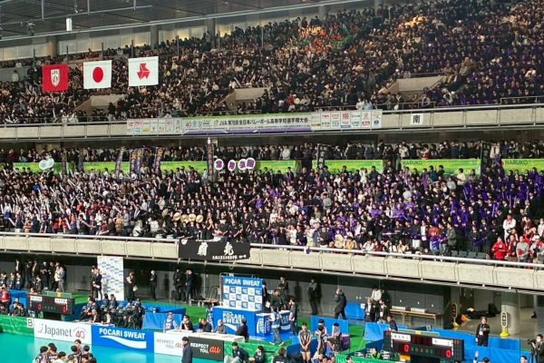 1/5(月)に東京体育館にて行われた、【ジャパネット杯 春の高校バレー JVA 第78回全日本バレーボール高等学校選手権大会】に本校男子バレーボール部が出場し、吹奏楽部全員で応援に行き、演奏させていただきました。