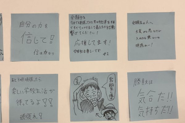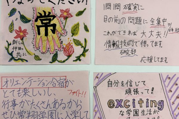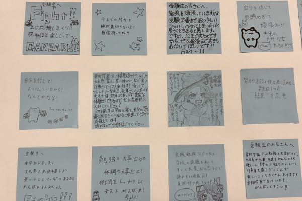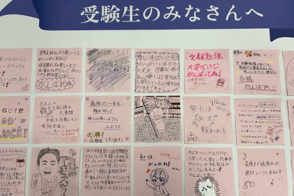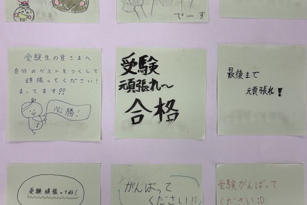 入試情報 入試関連のお知らせ 受験生へのメッセージ 2025.10.16 受験生へのメッセージ Jテスト 受験生の皆さん 受験生に向けて、本校在校生からのメッセージを掲載します。 なお、Jテストの日に入り口付近に掲示しますので、ぜひ読んでみてくださいね。