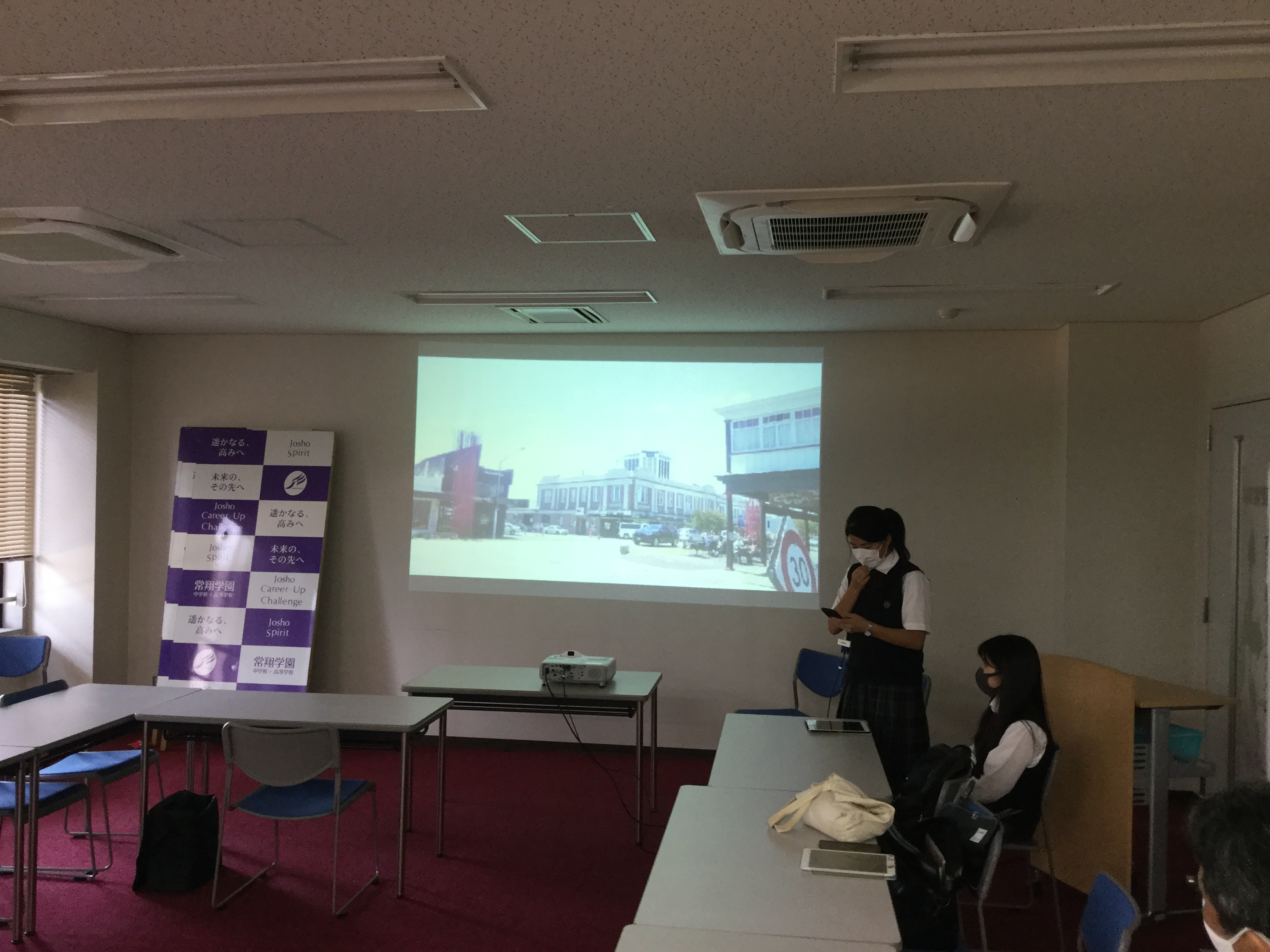 2020年8月25日(火)12時30分から13時に、本館2階会議室Bにて、2019年度実施のターム留学報告会を実施しました。現在高2の生徒ですが、高1の三学期にターム留学に参加しました。高2の現在、特進コース1名、文理進学コース1名の2名の生徒がニュージーランド留学の概要を報告してくれました。新型コロナウイルスの影響で、2021年の1月実施は難しいため、取り急ぎ学校への報告ということで、限られた時間の中で、体験したことを話ししてくれました。早く、後輩の生徒たちも海外に行ける環境になってほしいものです。以下が発表の様子です。