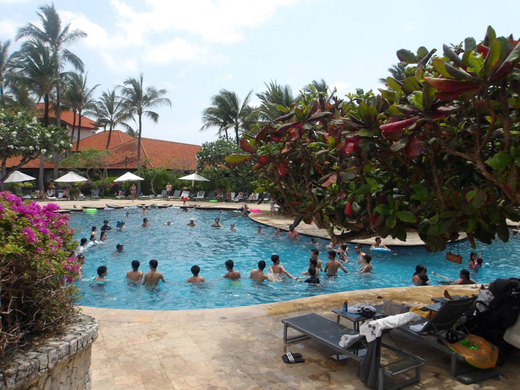 午前中はホテル内リゾート体験ということで、プール、プライベートビーチ、ジムやスパ、またホテルに隣接する大型ショッピングモールバリコレクションなど、行動班ごとに体験をしていました。