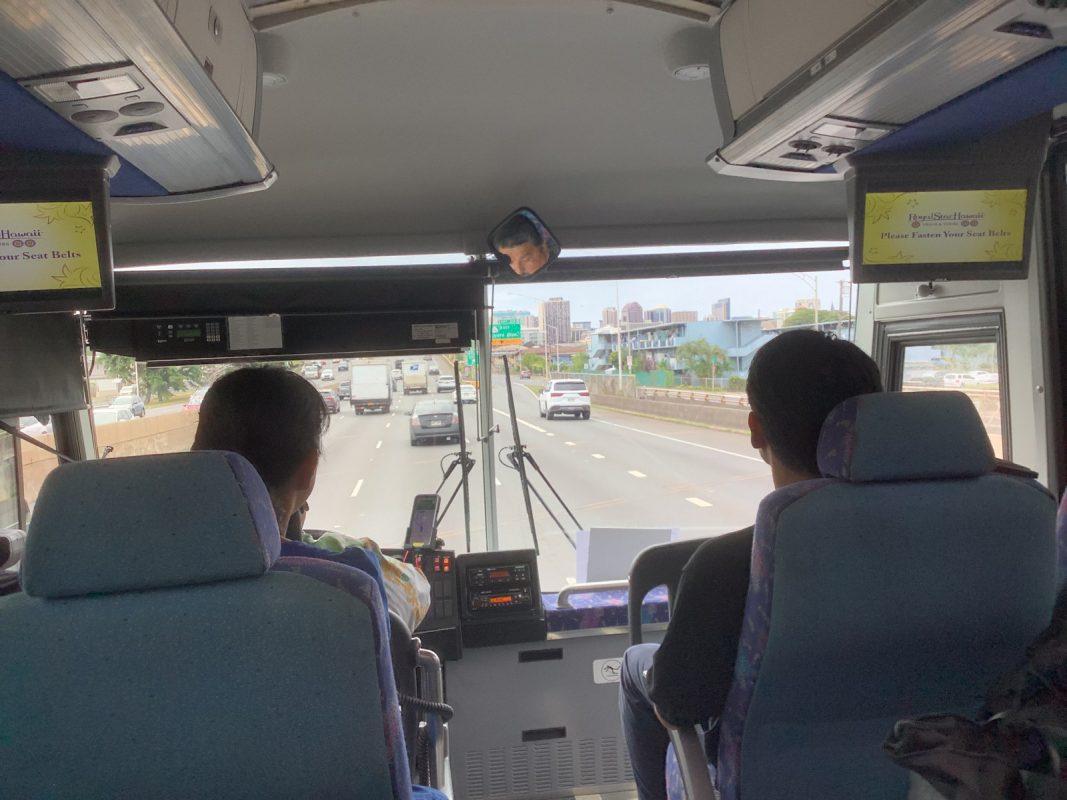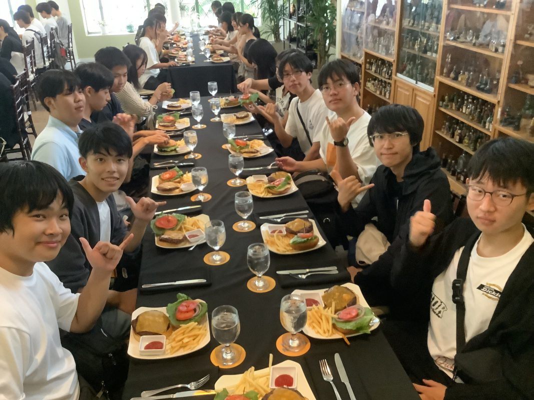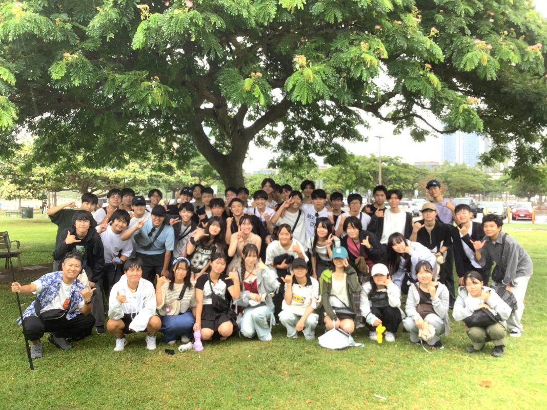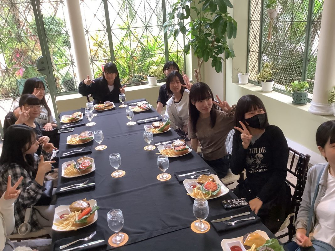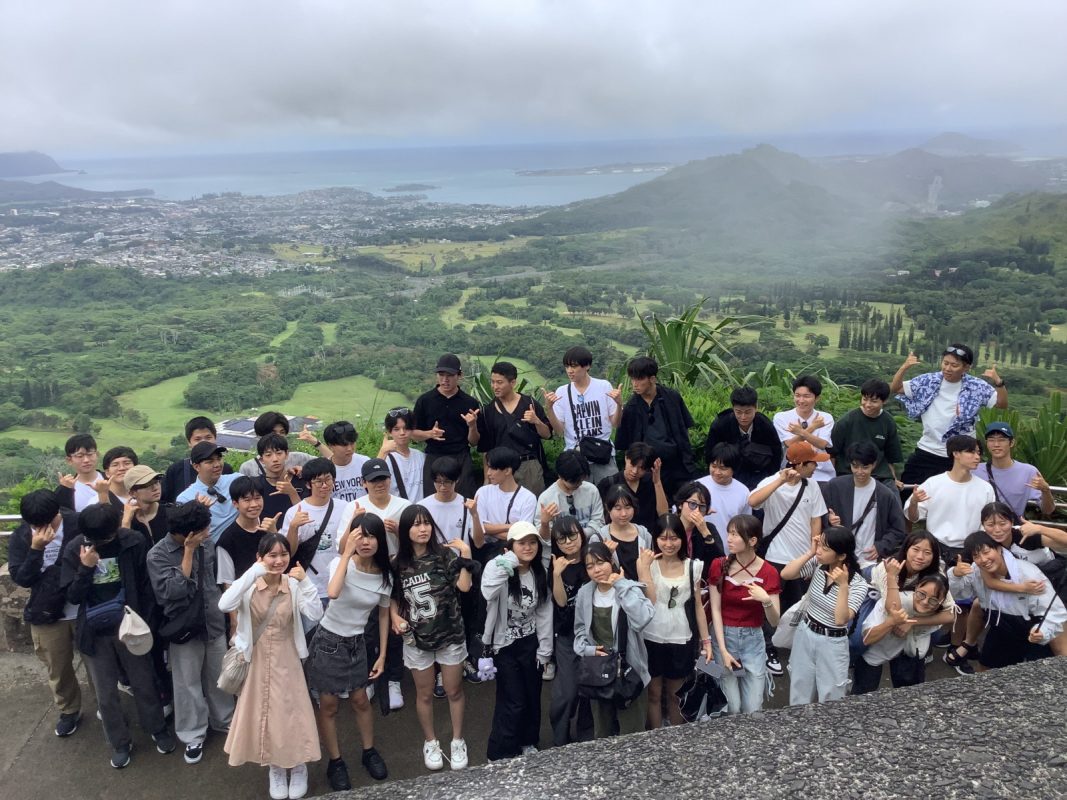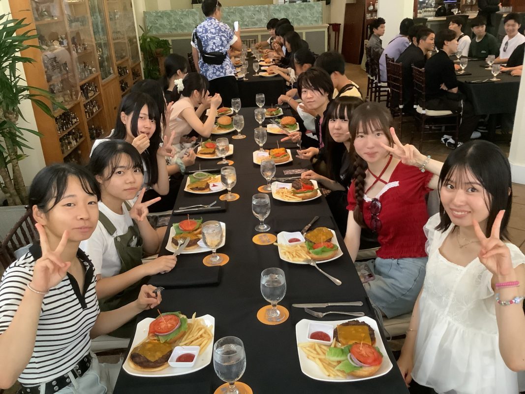ハワイの時間で、以下掲載します。9時46分頃 ホノルル空港着陸して,入国審査は人対応で結構時間がかかった。11時10分にバスで空港出発し,高速に乗って景色の良い山へ行きました。11時40分 ヌアヌパリ到着して,集合写真を撮影、少し自由見学しました。12時にバスで出発しました。パンチボールの丘の噴火口を車窓見学して,12時20分に昼食場所のカフェジュリアに到着しました。ハンバーガーを皆,喜んで食べていました。13時15分にカフェジュリアを出発しました。
