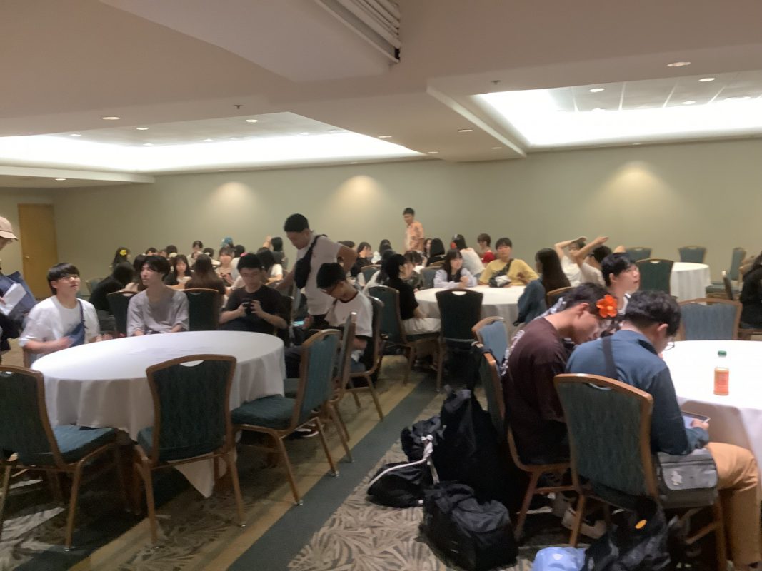 その後,雨がきつくなってきて,14時10分にアラモアナホテル到着し,荷物をホテルのバンケットに置いて,14時20分から15時30分までアラモアナショッピングセンターを見学に行きました。15時30分にアラモアナホテルに再集合して,16時からホームステイに関する諸注意と,ホストファミリーの迎えについての説明がありました。