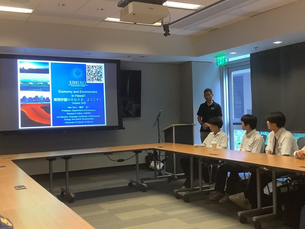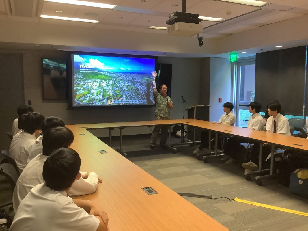 2025年10月8日(水)は,一日中ハワイ大学で過ごしました。午前は,ハワイ大学マノア校 社会科学部経済学科 教授で学科長の 樽井 礼 先生にお世話になりました。ガリレオプラン探究の各ゼミ全チームの発表を全員行いました。
