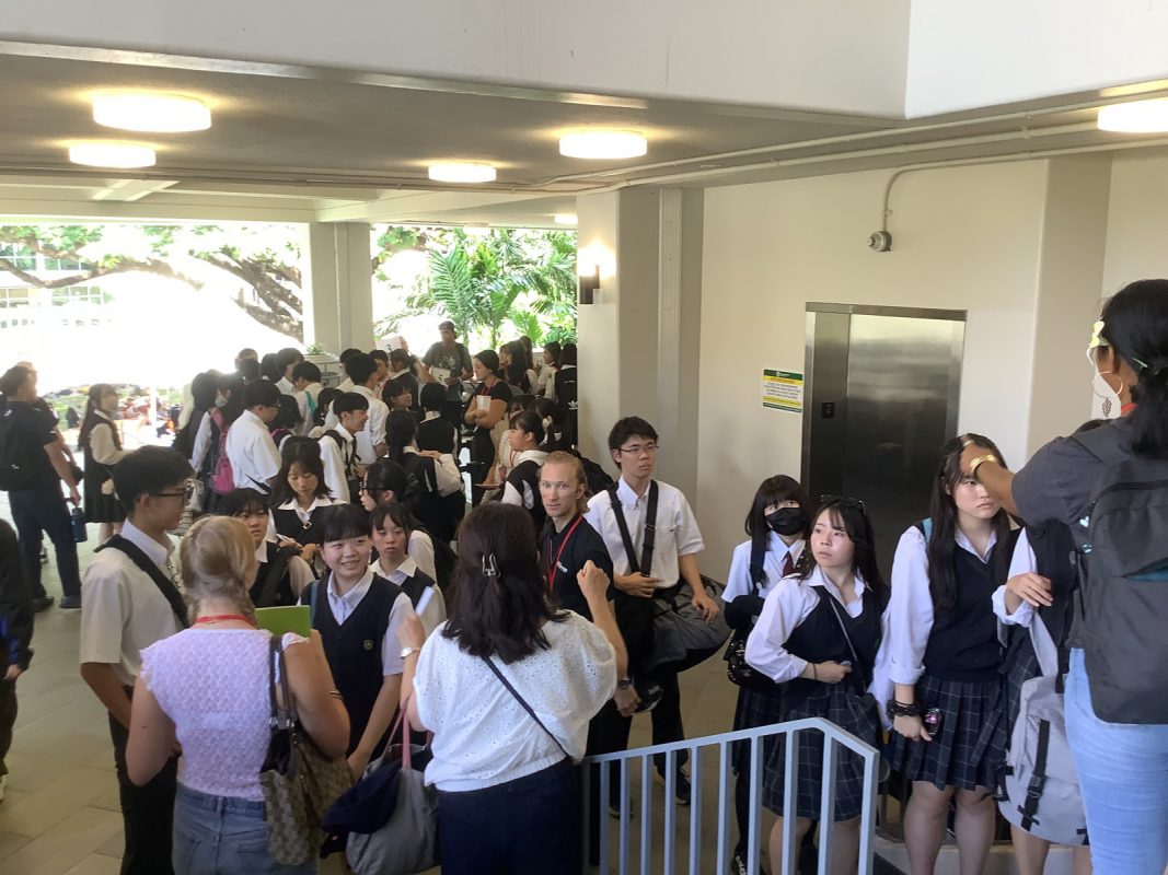 12時〜16時45分の時間の枠で,午後のプログラムを行いました。簡単な自己紹介の後,アイスブレイクで遊びました。その後,リーダーと一緒に昼食を各自で購入してグループの人たちと食べました。リーダーによる文化プレゼンテーションでハワイの多様性を直に感じました。日本とハワイの共通点,相違点をディスカッションしながら考えました。ミッションハントの途中で,ブックストアに行ったり,キャンパスの見学をしたりしました。リーダーと行動中に,少し買い物をすることができました。16時45分〜 別の建物に荷物を置いているグループは取りに行ってから,バス停に向かいました。17時頃バス停で全員合流して,バスに乗る前に記念写真を撮りました。バスに乗車して、アラモアナホテルに向かいました。