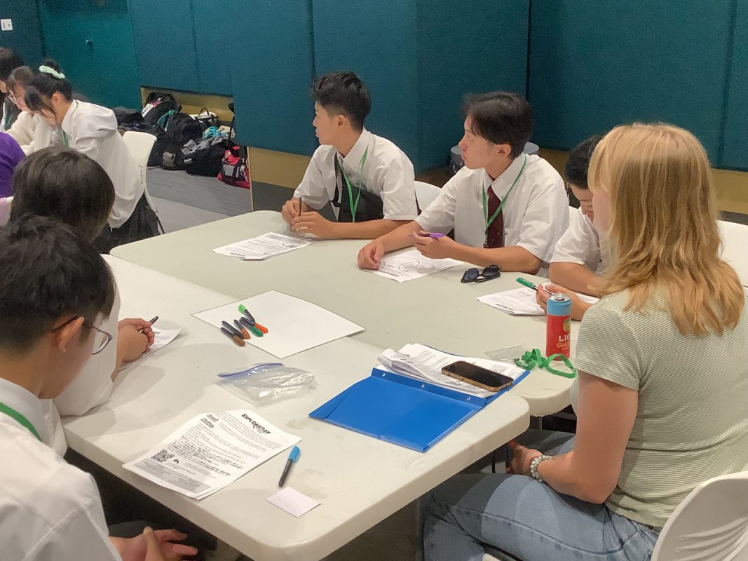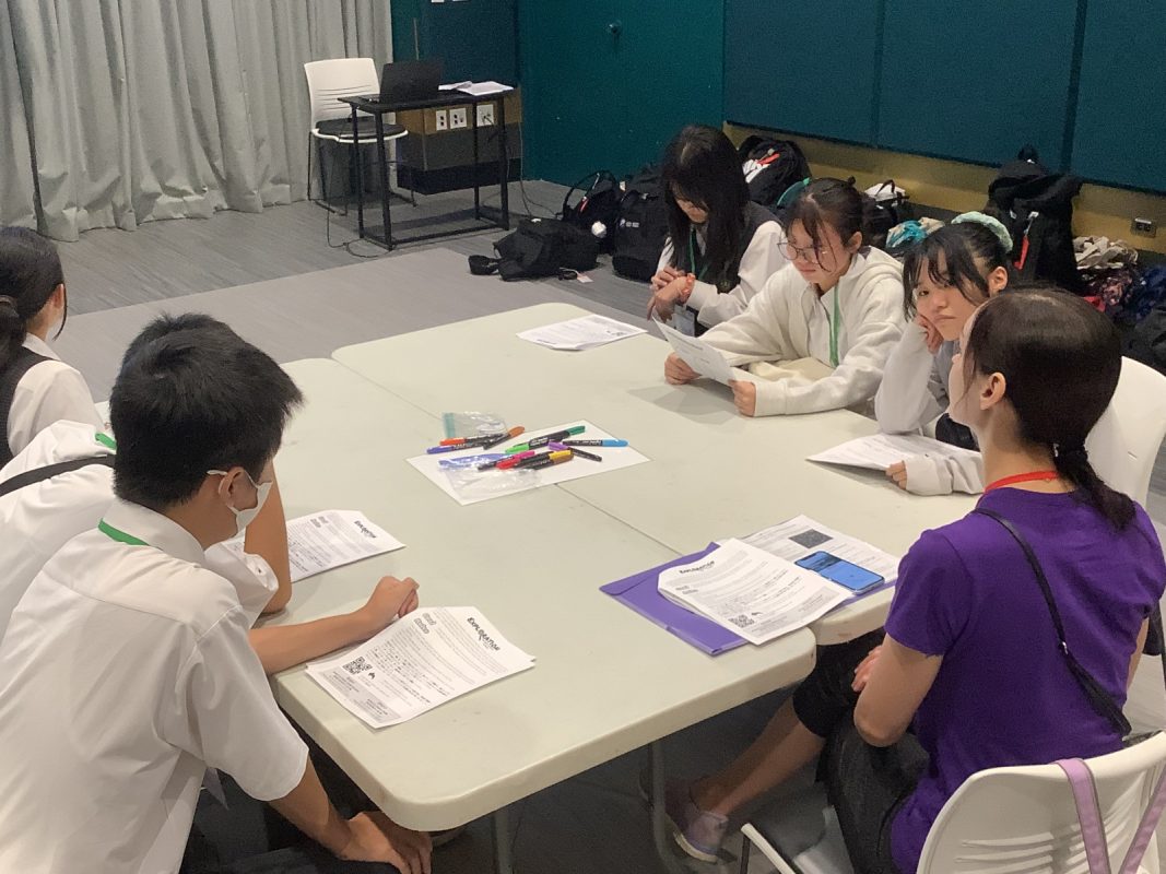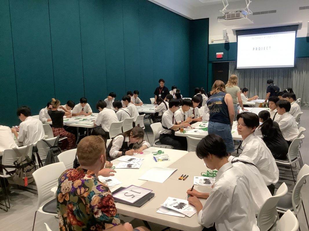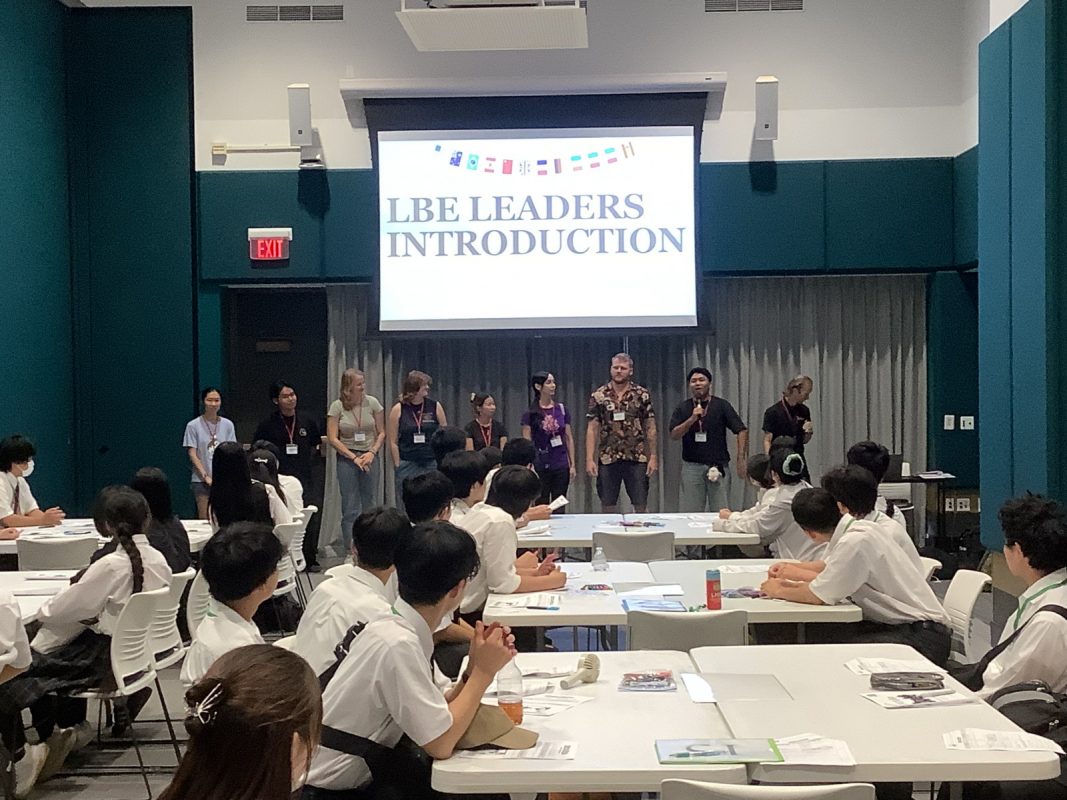午後のLbE HAWAIIの大学生によるプログラムは,4組8班,10組7班に分かれて,それぞれ大学生のリーダーが5名〜6名の生徒とともにキャンパス内で活動しました。