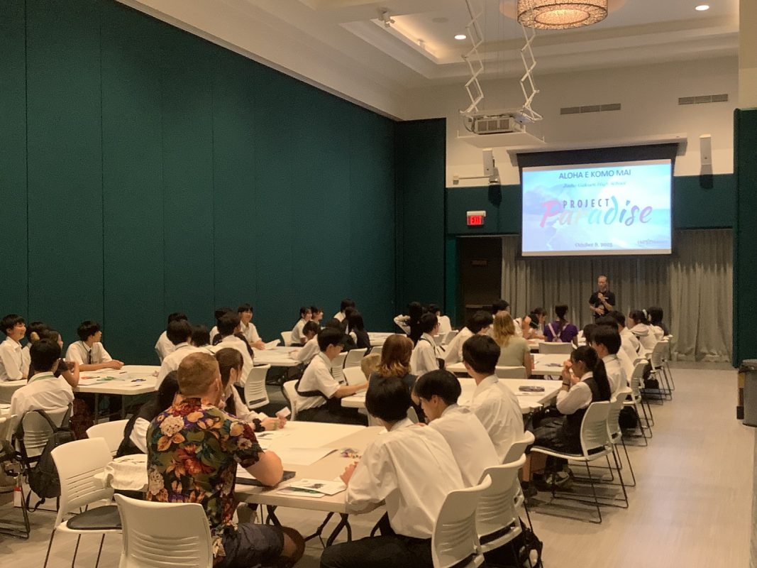 また,社会科学部経済学科 樽井先生,木村先生の講演は,ハワイ大学の紹介とご専門の社会科学について,また,ハワイの環境問題についても意識しながら経済について高校生にも理解できる範囲で,説明してくれました。