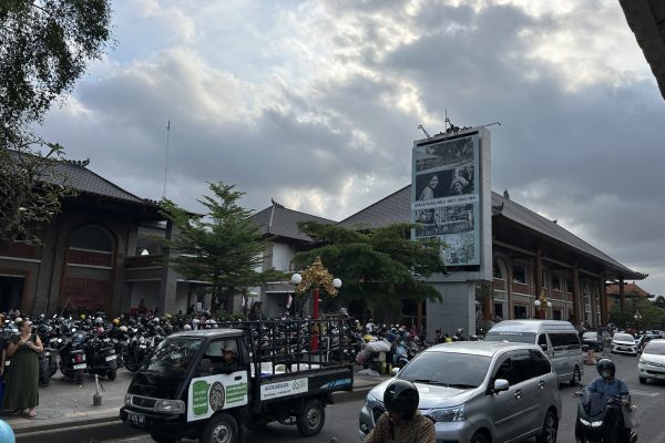 10/9(木) ホテルのビュッフェで朝食を摂ったあと、ホテルを出発し、バスで約2時間かけてウブド第一高校に向かいました。