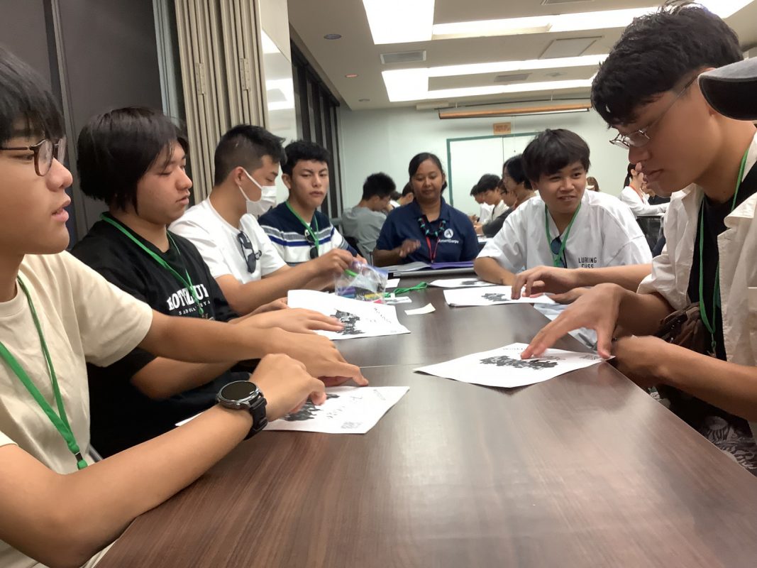 本日の一貫コースは、1日を通してハワイ大学の学生との交流を行いました。ハワイ大学の学生リーダー1名に対して本校生徒5〜6名のグループを編成し、合計15グループに分かれました。最初の自己紹介からすでに大いに盛り上がり、笑顔があふれるスタートとなりました。続いて、Kahoot!というアプリを使ったクイズ形式のアクティビティを通して、ハワイの文化・多様性・歴史、そしてアロハスピリッツについて楽しく学びました。チーム対抗戦ということもあり、会場は大いに盛り上がりました。
