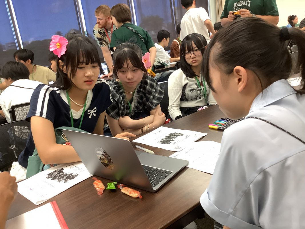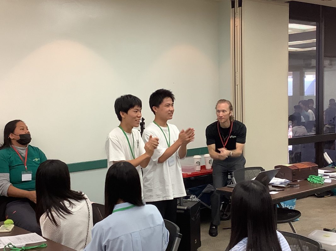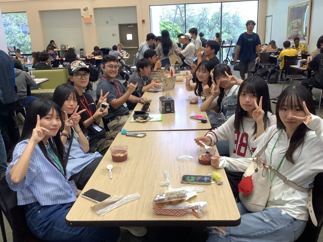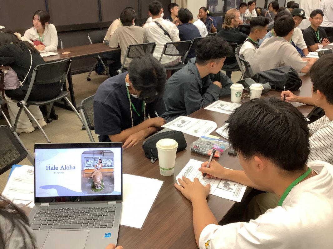 その後は、各グループごとに日本とハワイの共通点や相違点についてディスカッションを行い、英語でプレゼンテーションを発表しました。昼食はリーダーの学生とともに自由に取り、フードコートや構内のキッチンカーなど、多様な食文化も楽しみました。