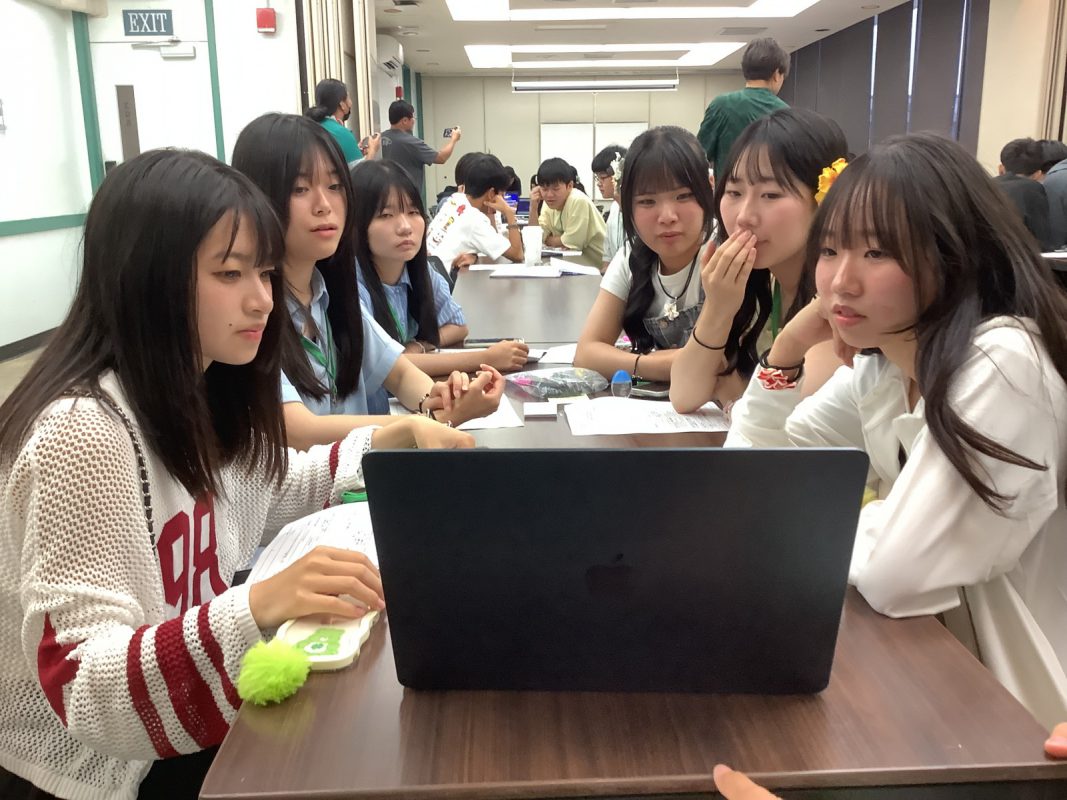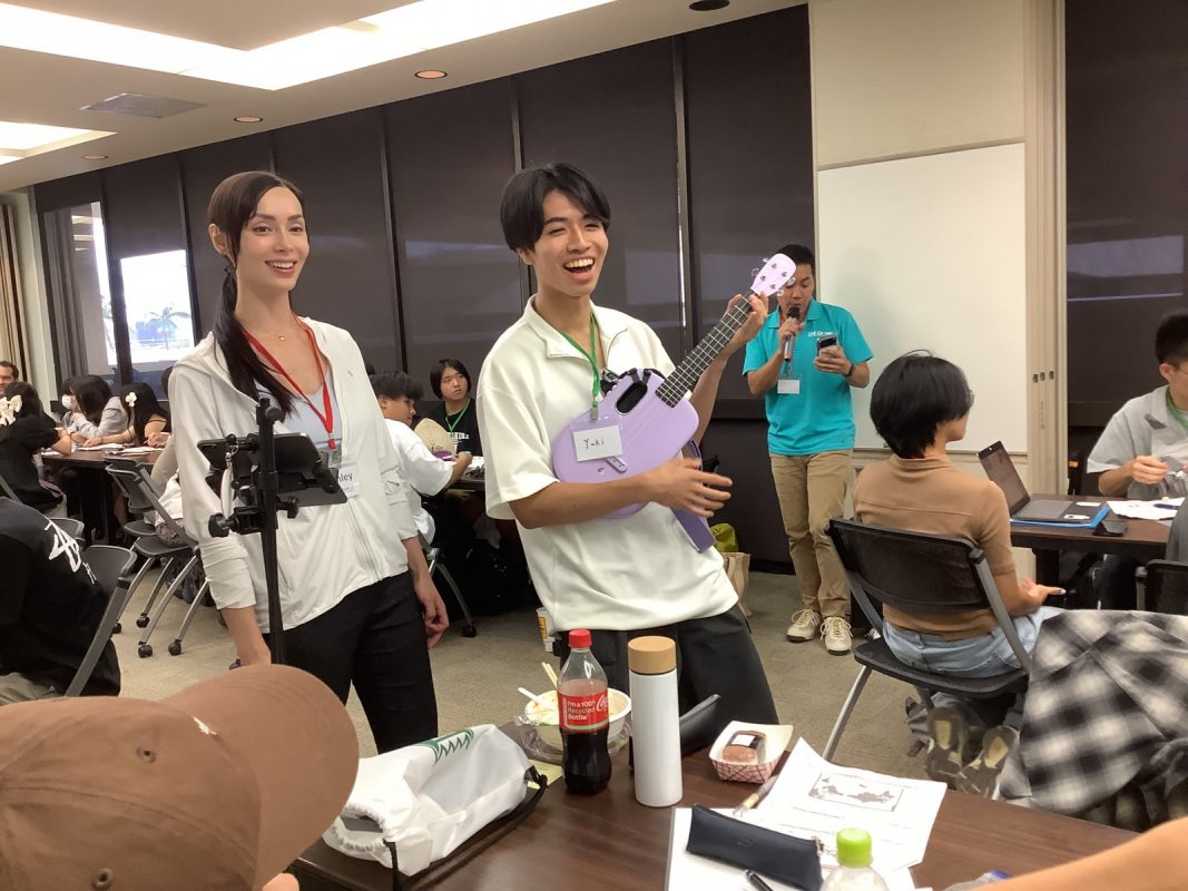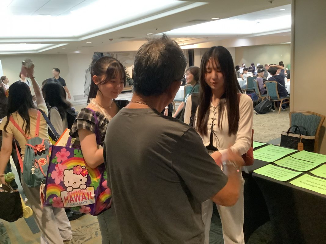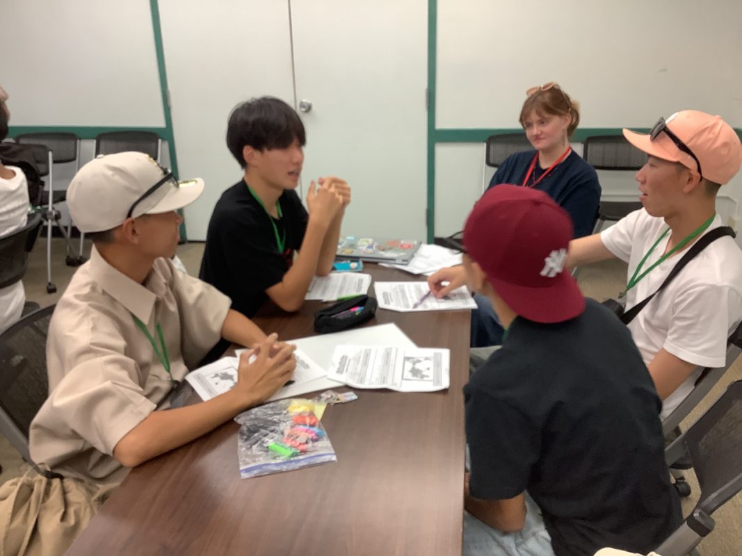 その後は、各グループごとに日本とハワイの共通点や相違点についてディスカッションを行い、英語でプレゼンテーションを発表しました。昼食はリーダーの学生とともに自由に取り、フードコートや構内のキッチンカーなど、多様な食文化も楽しみました。