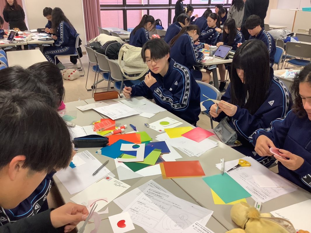 2025年12月17日(水)特別講習期間中の午前中2コマの枠で,京都芸術大学村川先生によるグローバルのワークショップを行いました。MoG修学旅行の後,探究の時間では,模擬国連の各国大使になって,世界の食事のテーマを考えていますが,世界に視野を広げつつ,世界平和を意識して新しい国旗を作ろうとするワークショップを行いました。限られた時間の中で,My Flag Design というミッションで取り組みました。掲示して並べてみると,いろいろ想いのこもった作品がたくさんできました。特別授業でしたが,グローバル探究コースらしい取り組みでした。