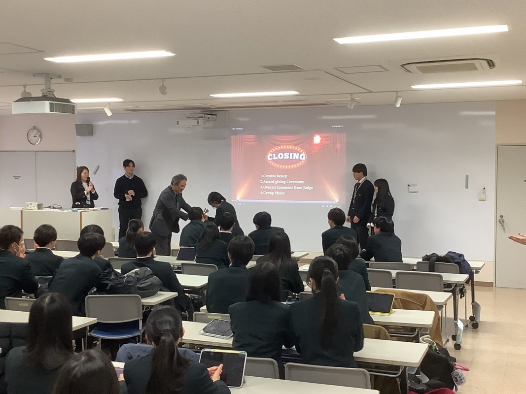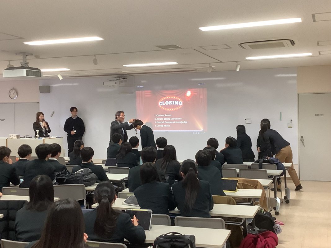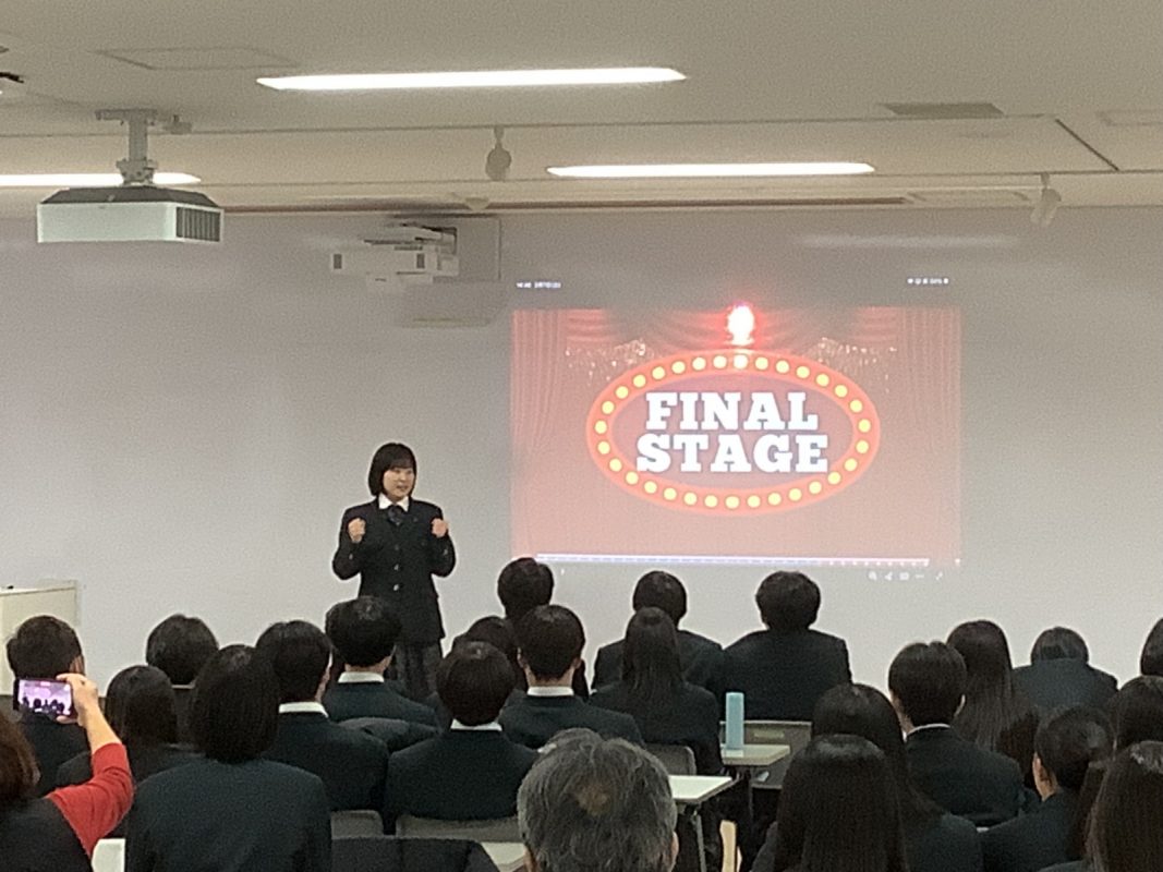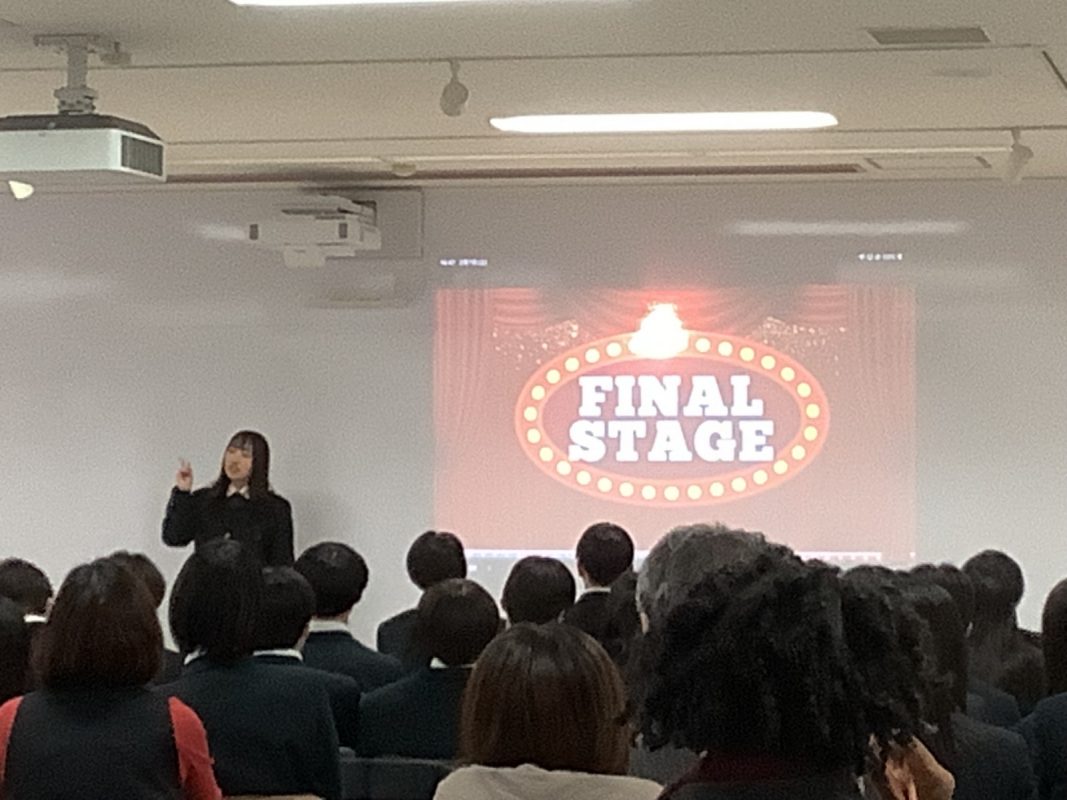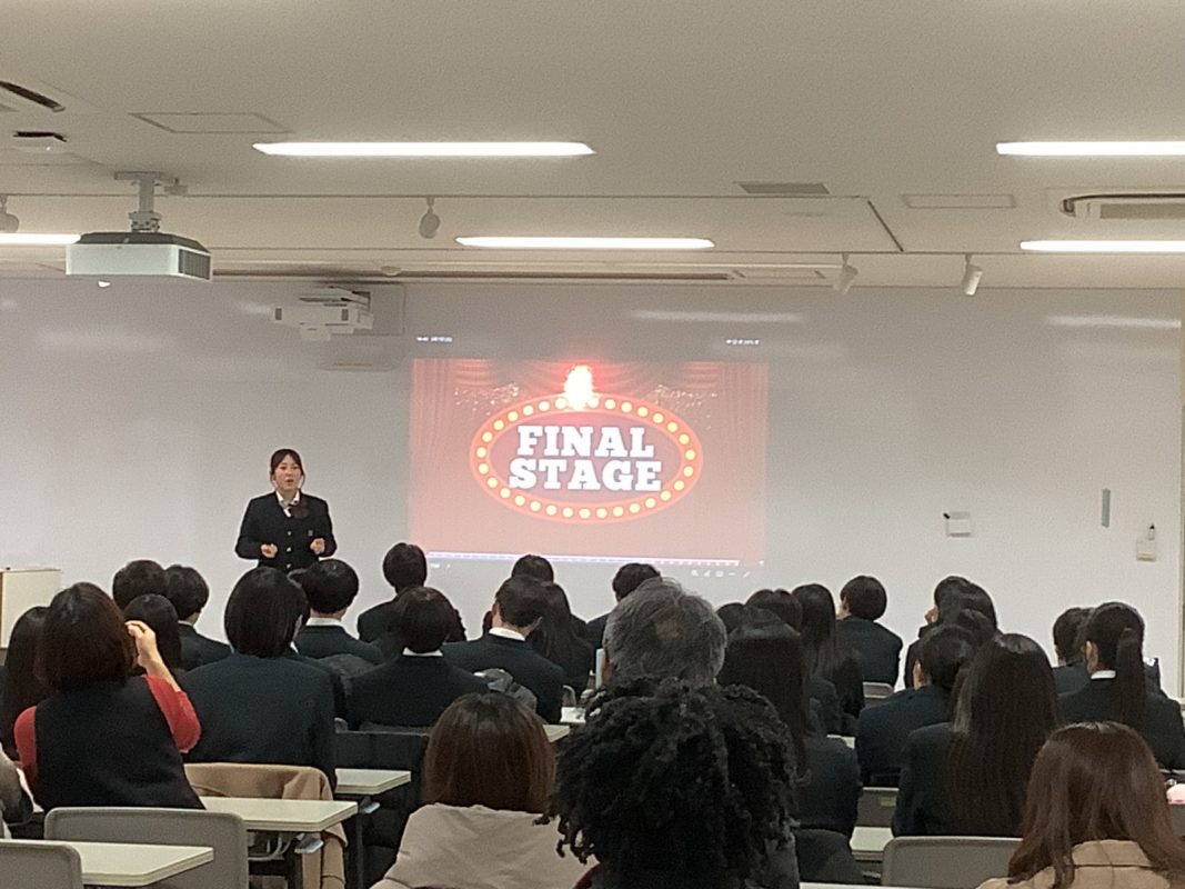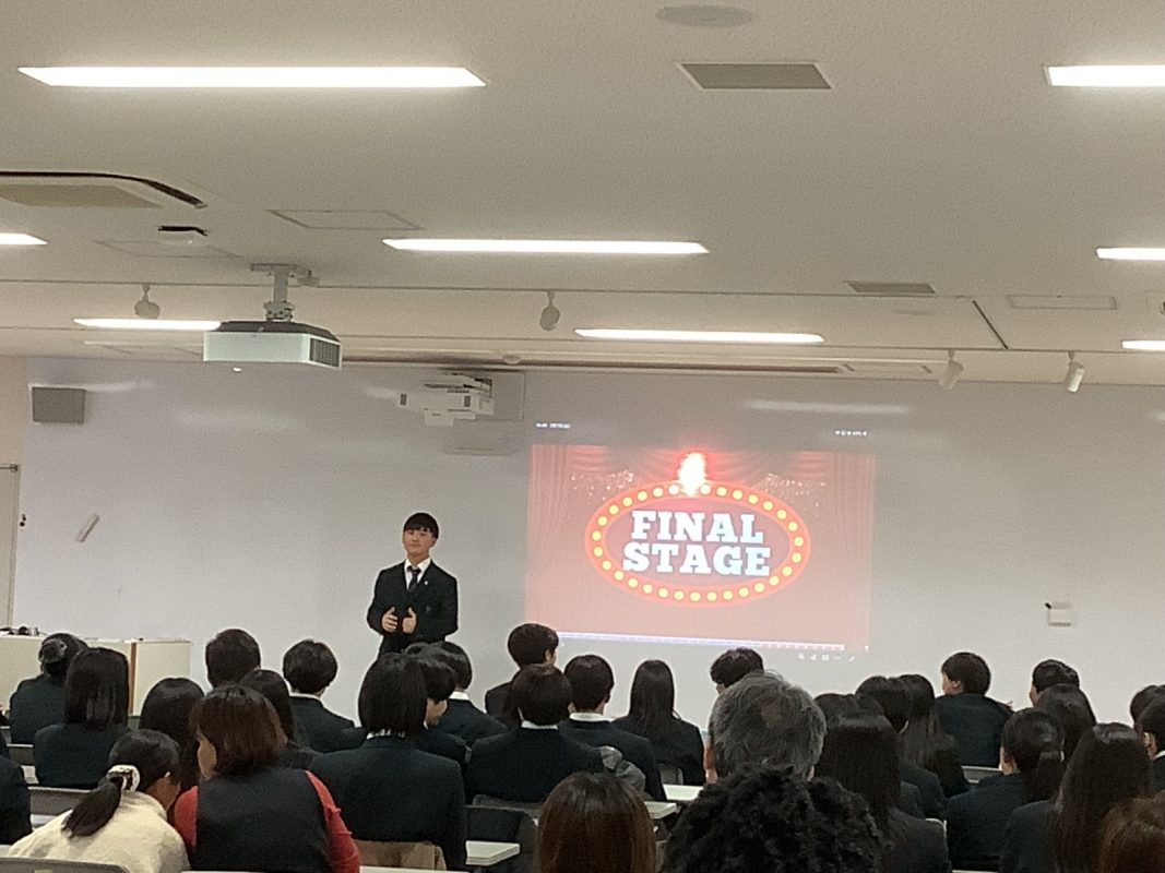 2026年2月7日(土)午後に北館3階 第2特別教室で,グローバル探究コースのスピーチコンテストを行いました。2年9組の生徒一人一人は力強く発表していました。6グループから代表1名ずつが選ばれて,ファイナルステージに進みました。