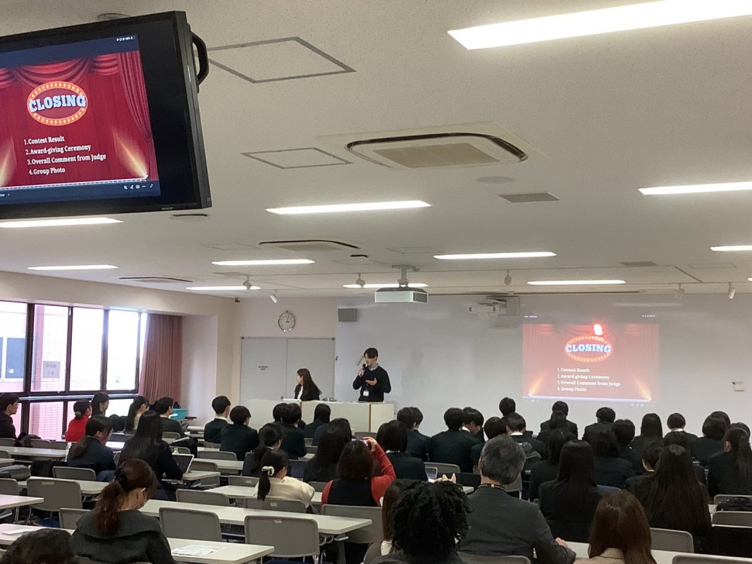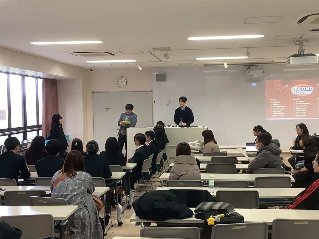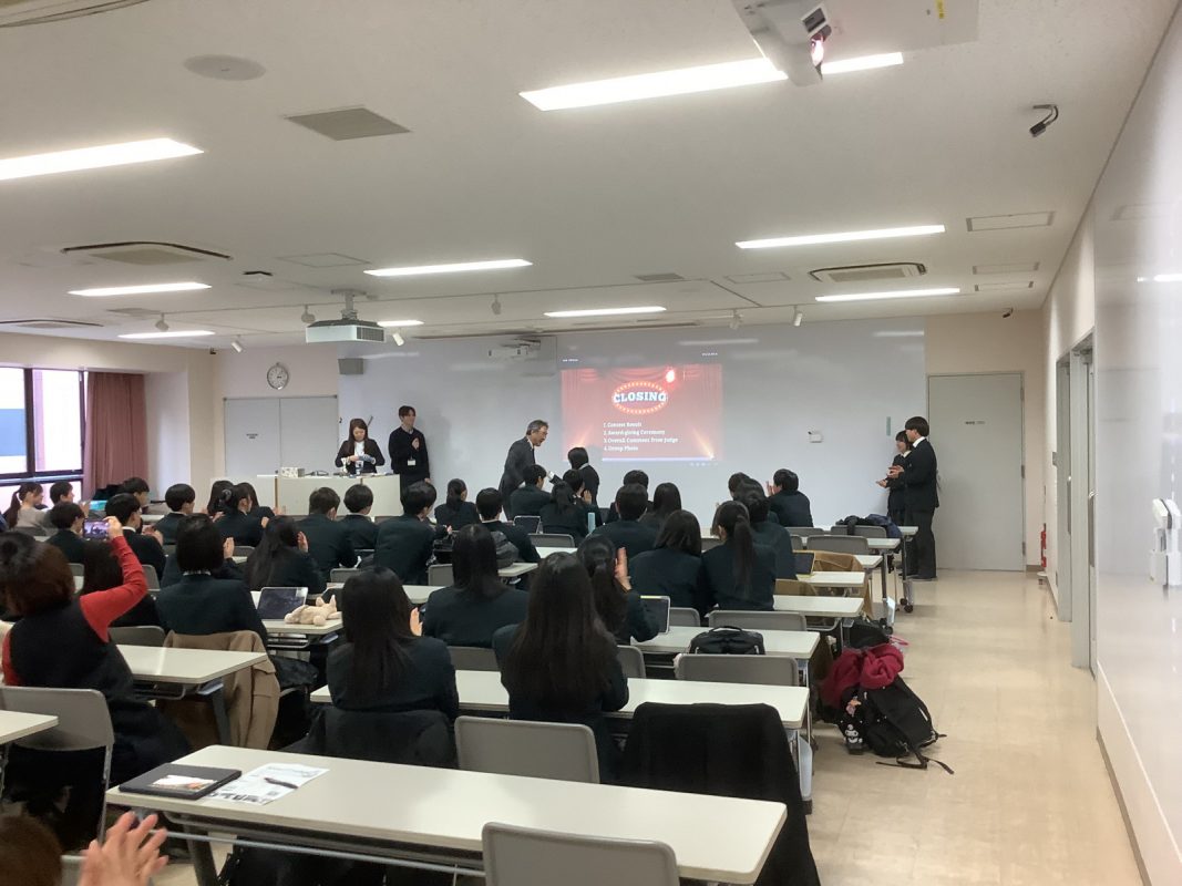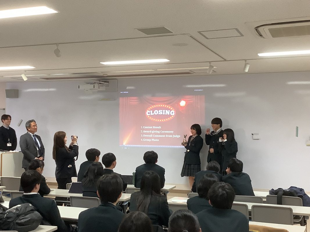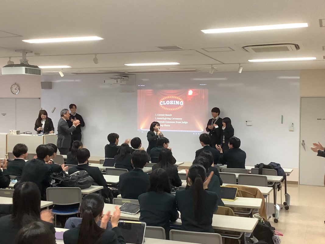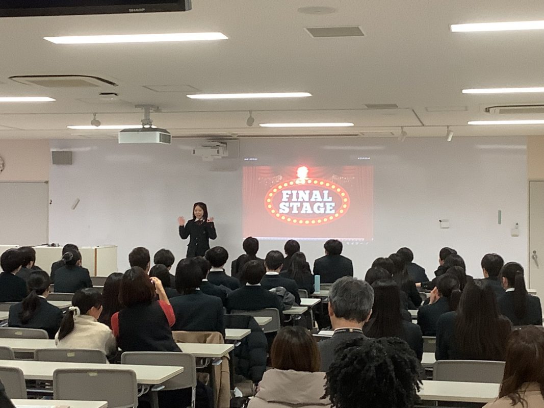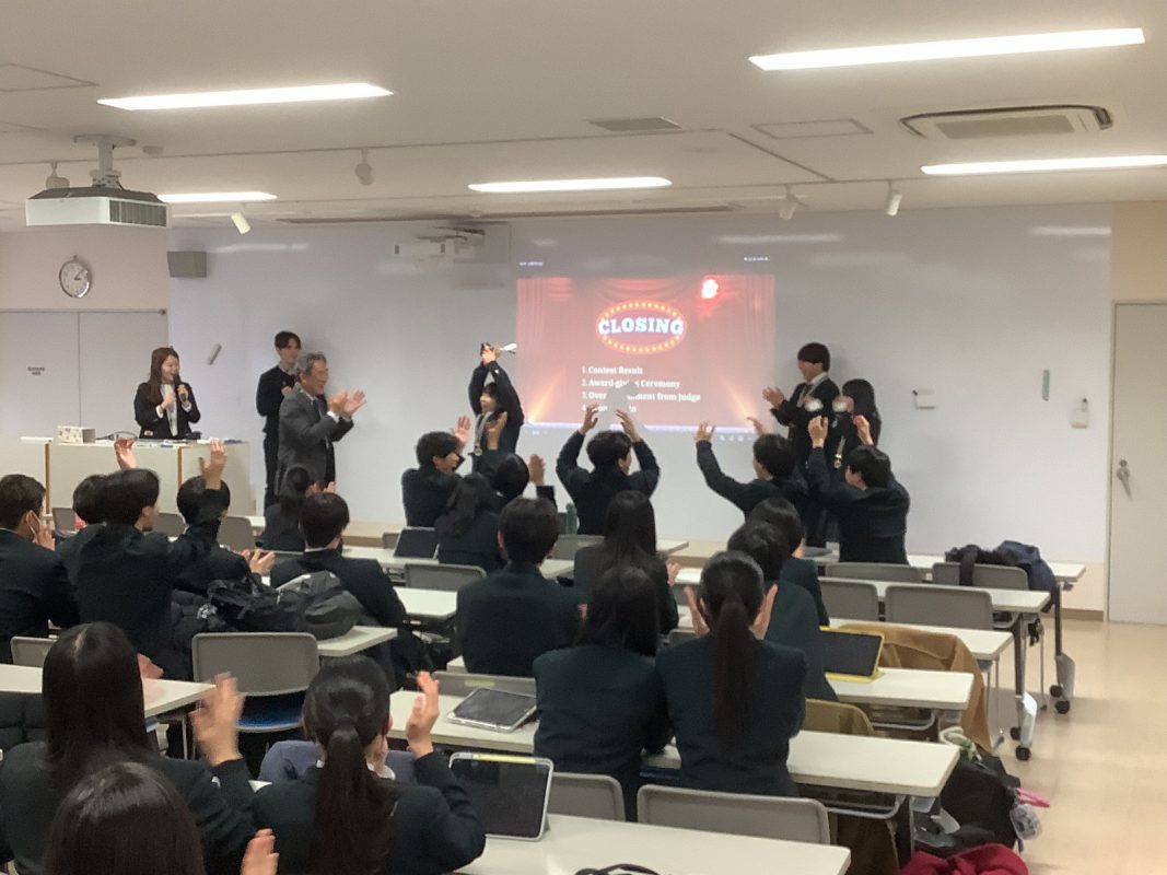 2026年2月7日(土)午後に北館3階 第2特別教室で,グローバル探究コースのスピーチコンテストを行いました。2年9組の生徒一人一人は力強く発表していました。6グループから代表1名ずつが選ばれて,ファイナルステージに進みました。
