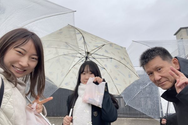 天候はあいにくの雨模様でしたが、会うことのできたどの生徒も、晴れやかな笑顔で「頑張ってきます!」と力強く声をかけてくれました。
