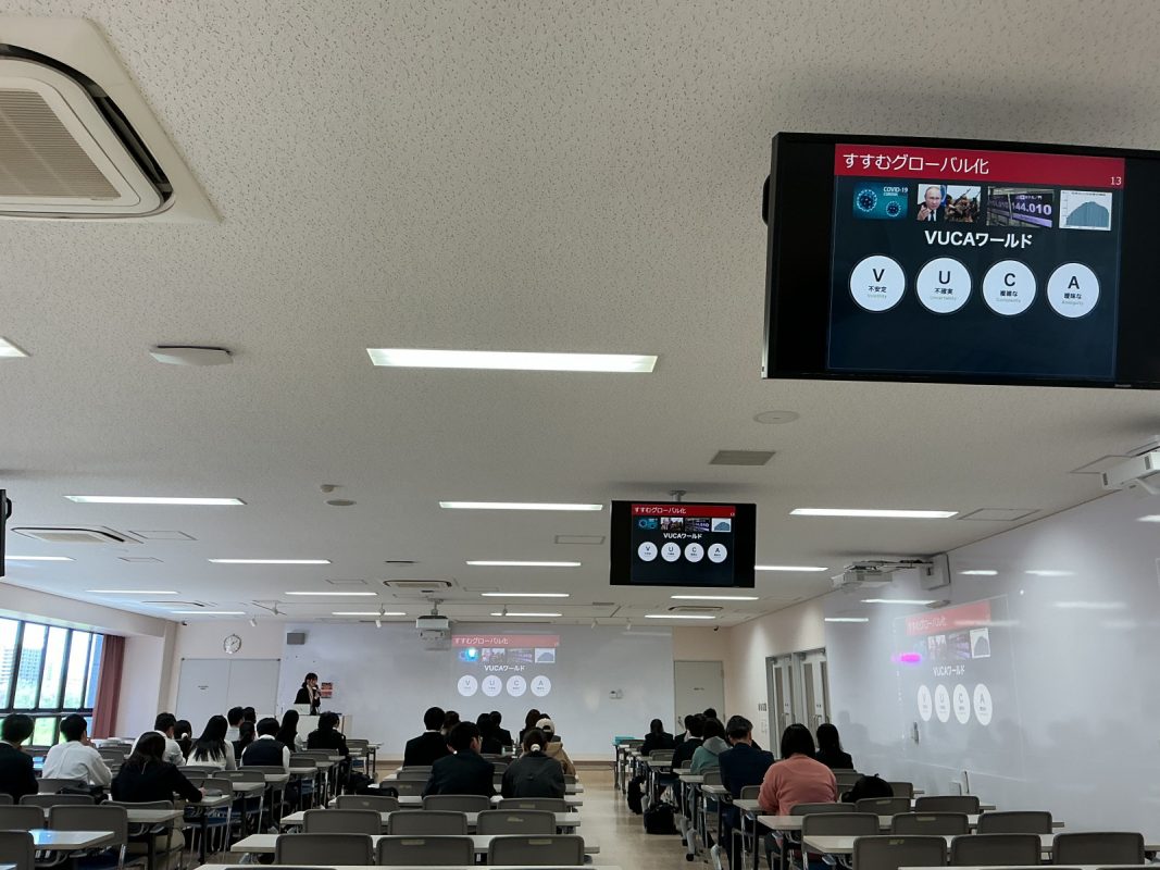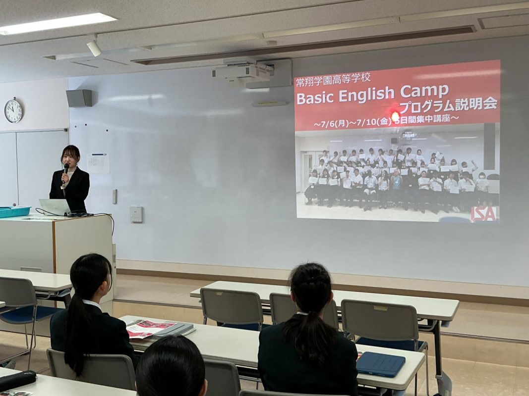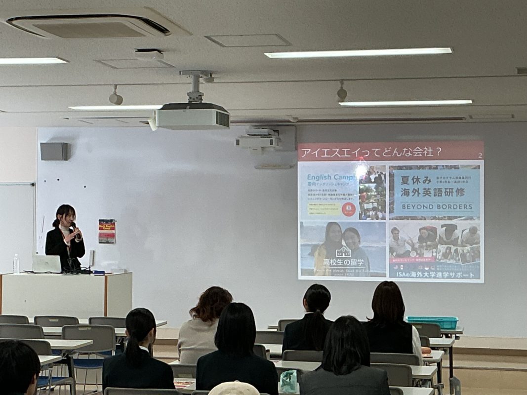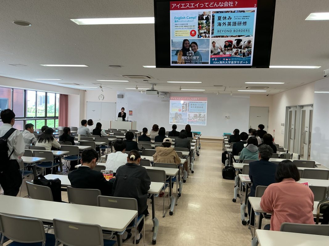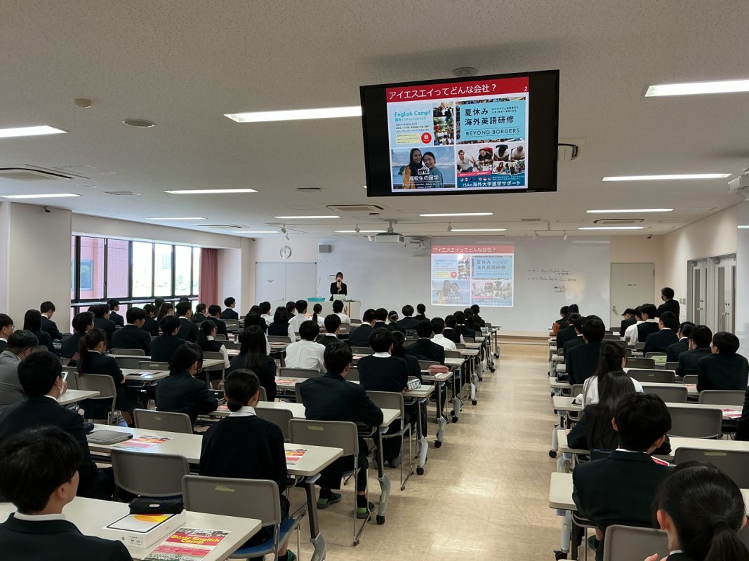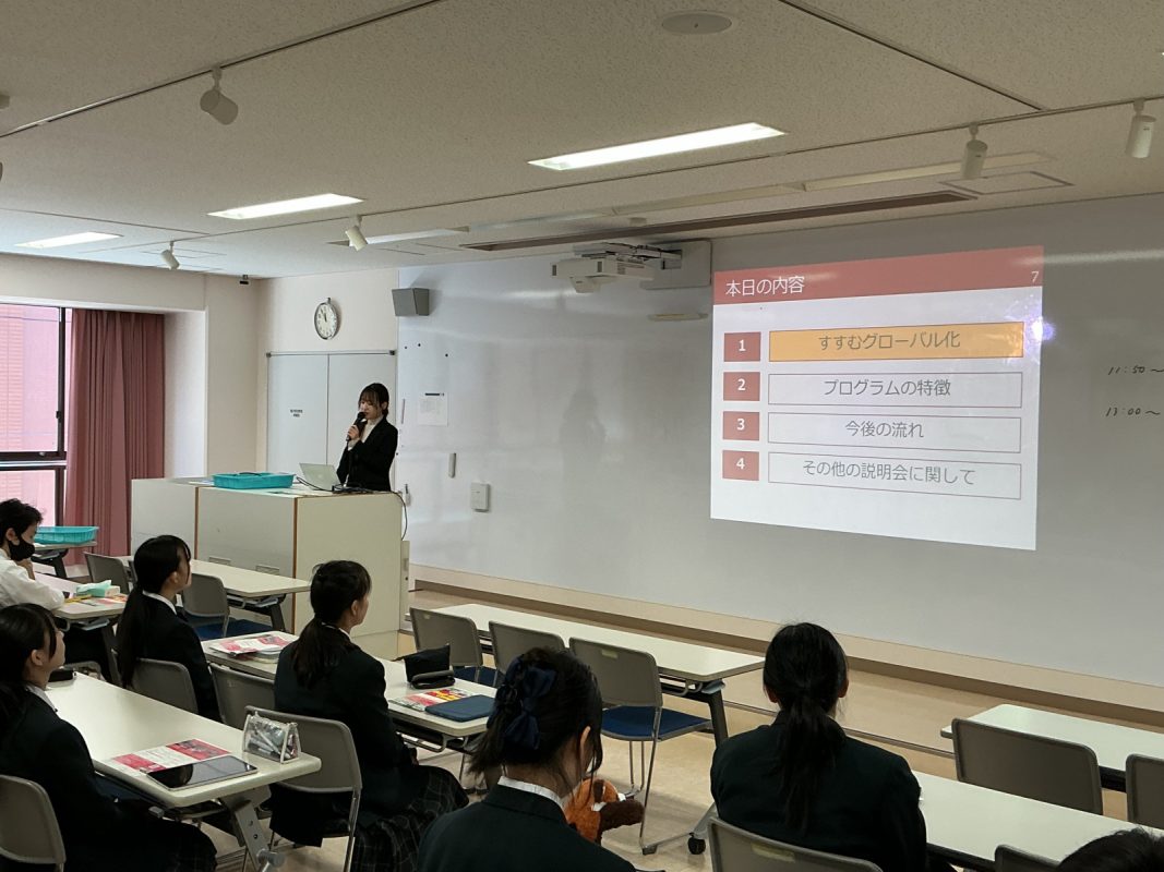 2026年4月11日(土)に説明会を行いました。1組4組の生徒は,4限の探究学習の時間に業者様に説明してもらいました。全体としては,13時から40分程度nの説明でした。13時からの説明会では23組の保護者様・生徒さんが参加しておられました。4限の説明会では4名の保護者様が大教室の後ろで、一緒に聞いておられました。5月7日が申し込み締め切りですので,どんどん申し込んでいただけることを期待しています。