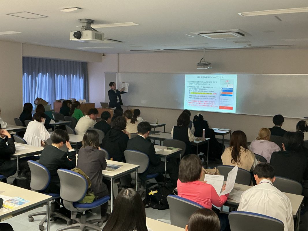 2026年4月18日(土)13時から北館4階の教室で説明会を行いました。30名の申し込みがあり、説明会会場はかなり窮屈でした。旅行社の方からの説明を皆さんしっかり聞いてメモを取っていました。申し込み金、パスポートのこと,いろいろ諸手続きのことなど、多くの説明がありました。夏の2週間、皆さんが成長されることを期待します。