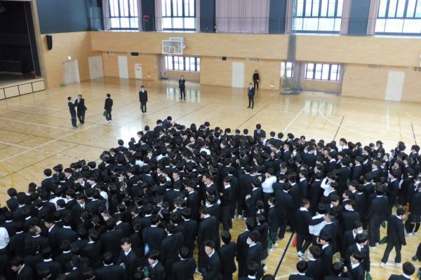 4つの選択肢に合わせて体育館を4面に分け、自分が選んだ選択肢の場所に移動しました。