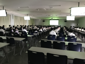 サマースクールの時間を利用して防災学習を実施しました。例年は消防署の方が来て、水消火器や煙体験等ができるのですが今年は緊急事態宣言中ということでDVDでの学習となりました。自然災害と家での防災について学習しました。