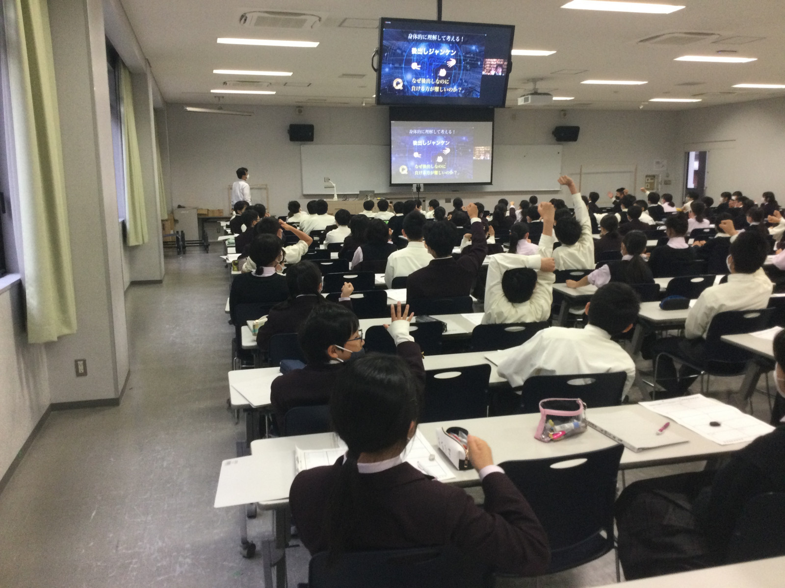2022年5月9日(月)5限6限 本館5階 第一特別教室で4クラス合同で行いました。本日は,教養の未来研究所所長で,知窓学舎塾長,多摩大学大学院客員教授の矢萩邦彦先生のSTEAM教育の講義とワークショップを実施しました。アイスブレイクでは,後出しじゃんけんのゲームをしました。人は勝とうとします。負けるのは意外と難しいです。生徒たちが静かに聴く部分と,隣りの生徒と相談する部分が交互にあり,矢萩先生の説明を聴き入る生徒が多かったのは,本当に良かったと思います。