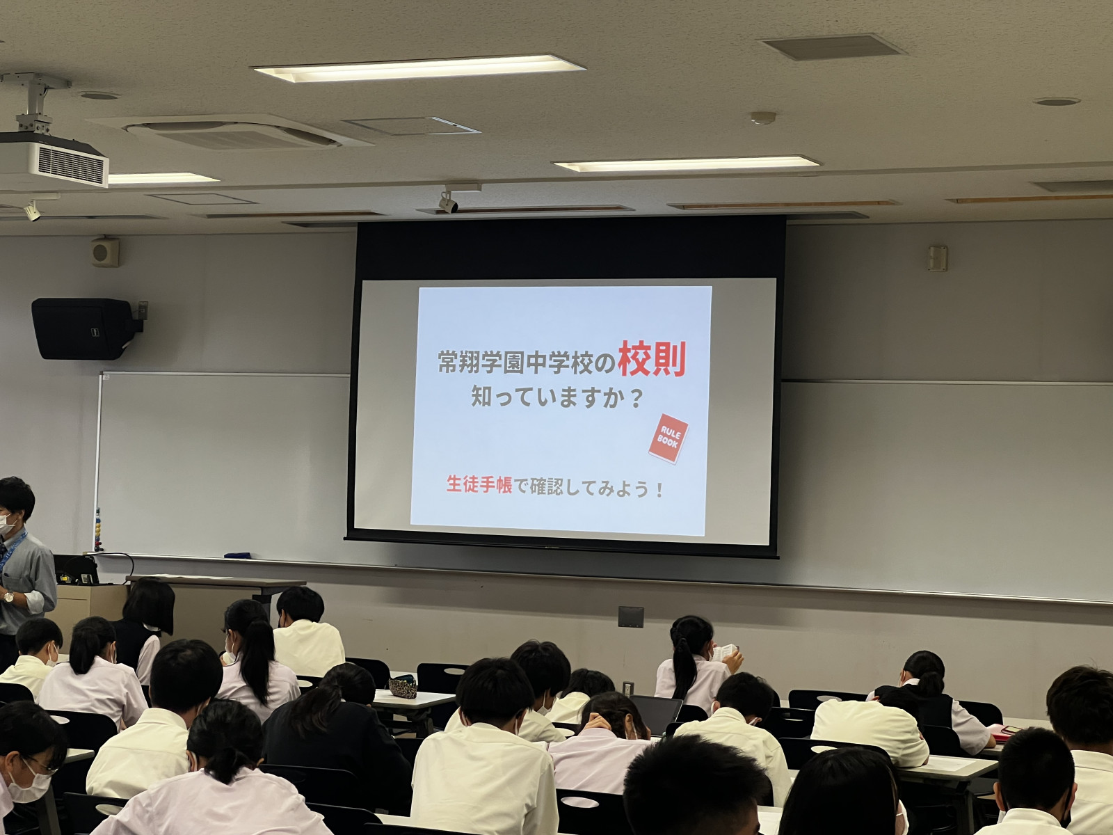 2022年9月5日(月)5限6限の時間帯に,本館5階 第1特別教室1年1組3組,第1視聴覚1年2組4組で②クラスずつに分けて,数学科の谷本先生,島田先生の数理探究の探究活動を行いました。中学1年1,3組は、5限に論理的思考をもちいてブラック校則について考え、6限はジャンケンに必ず勝つ方法について探究しました。本校でも校則について考え初めている中で、自分自身が通っている学校の校則を考え意味を理解し見つめ直すことができ、中学1年生のリアルの声が聞けるいい機会となりました。
