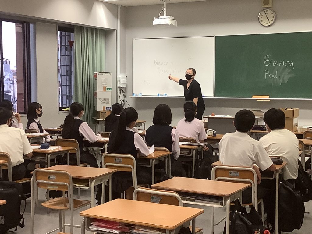 2022年10月3日(月)学習タイムの時間を利用して,4クラスを8つのグループに分割,ネイティブ講師による英会話の練習(スピーチコンテストに向けたレッスン)を行いました。中学2年の時の英語コミュニケーションプログラムでお世話になったネイティブ講師もいたので,生徒たちにとっては,久しぶりに会えたという感じでした。スピーチコンテストに向けた英語のプレゼンテーションを組み立てる準備に生徒たちは一所懸命になっていました。
