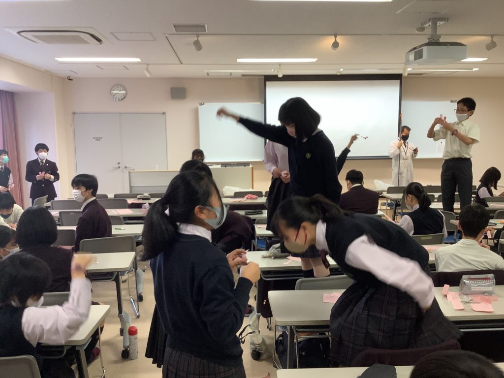 2023年5月1日(月)5限 第2特別教室で4クラス合同で持田先生による特別授業が行われました。紙、ハサミ、クリップを使い、植物種子に似せたペーパークラフト作りをしました。「どんな形、どんな大きさにすればゆっくり落ちるか」グループで試行錯誤しながら楽しく学びました。もくもくと製作する人、何度も落としてみて少しずつ形を変える人など同じ目標にむけて違ったアプローチをする人が多くいました。時間を忘れて楽しめた1時間でした。