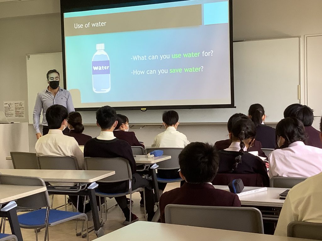 5月8日(月)5限6限 8グループに分かれて、英会話講座3回目を行いました。本日と来週の講座でSDGs14をGoalにして学習します。そこで今日は主に水の使われ方、使い方について学ぶ時間をとりました。身の回りでどのように水が使われているかを考える良い機会となりました。次回の講座までに、SDGs14を達成するにはどうしたらいいか家族や友達と話し合っておいて欲しいものです。