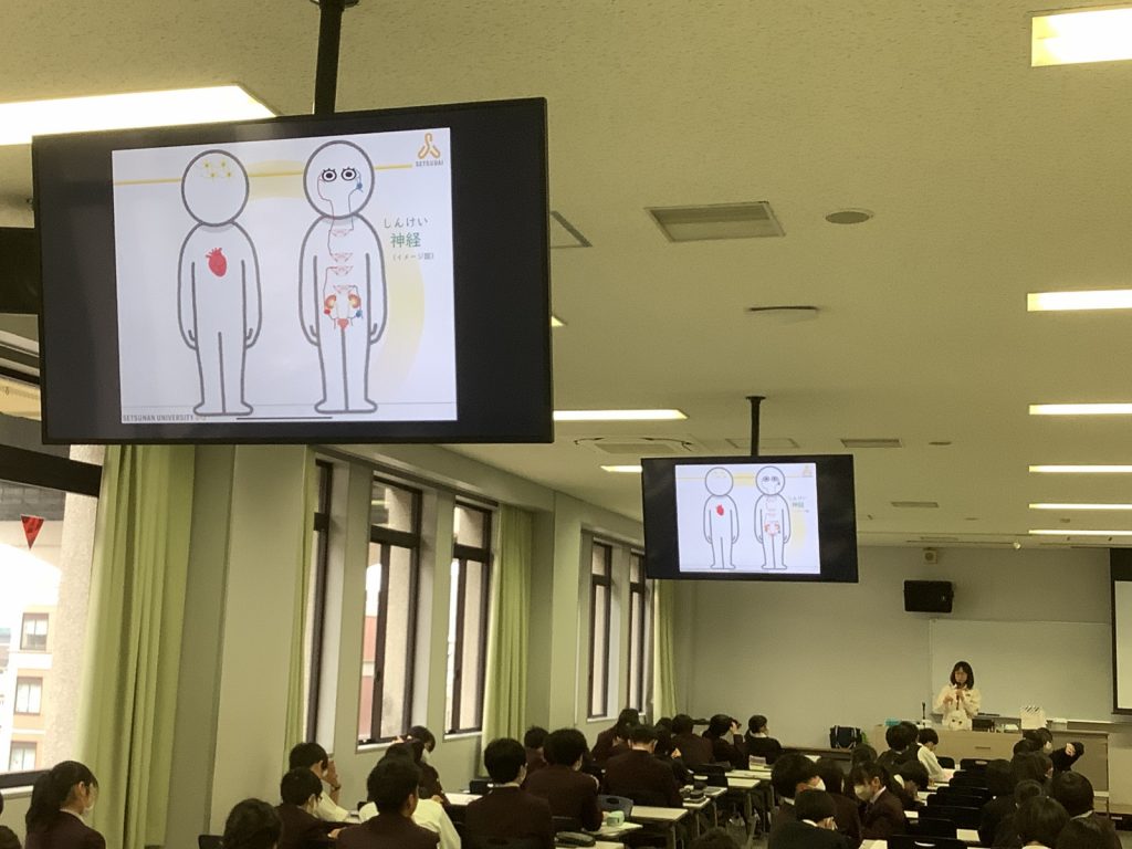 2024年2月19日(月)5限6限に本館第1特別教室で,大学講義を行いました。摂南大学農学部の藤林先生が来てくださいました。自分の健康を守ることが大事で,生きていくためには 食事 運動 睡眠 が大切ということを理解しつつ,自分の体と心の繋がりを考えます。