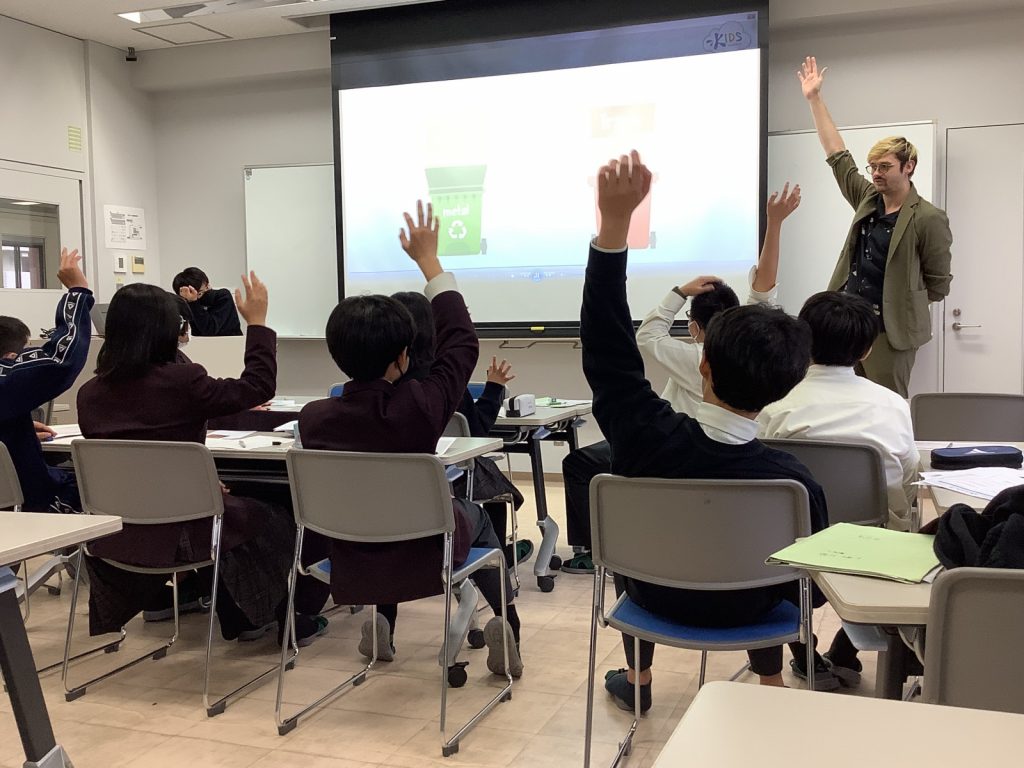 SDGsに関しては、リサイクルやリユーズについて英語で学び、自分達の日常生活でどんなことをしているのか、何を意識すべきなのかについて意見交換をしました。