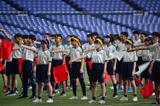 7月4日(木)京セラドームにて2024年度の体育祭が行われました。2、3年は昨年度に続いて2度目、1年生は初めての体育祭という事で各学年でとても盛り上がりました。学年を超えて黄色、ピンク、紫、青の団に分かれて対抗リレーなどで協力して参加もできました。2,3年合同でダンスの発表もあり、体育の授業中の練習の成果を披露してくれました。それぞれが各競技をとても楽しんで参加できたと思います。