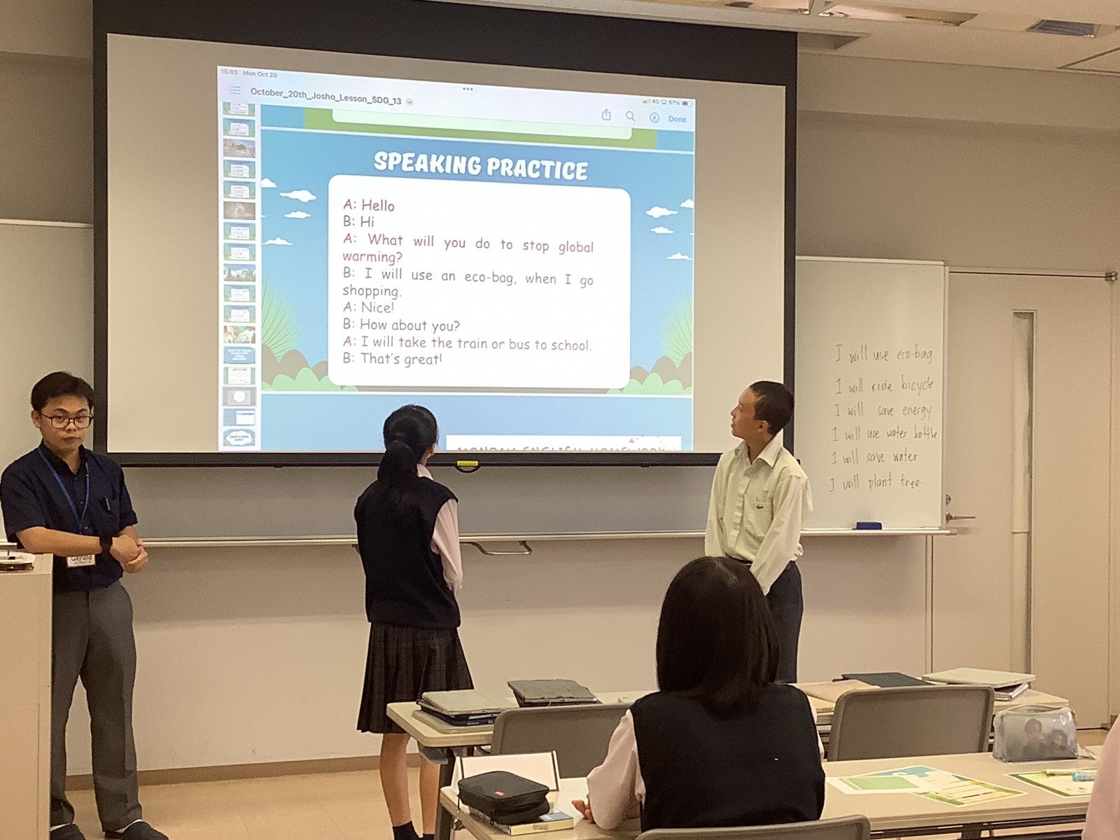 現在、SDGs目標13「気候変動に具体的な対策を」をテーマに、英語での学習に取り組んでいます。