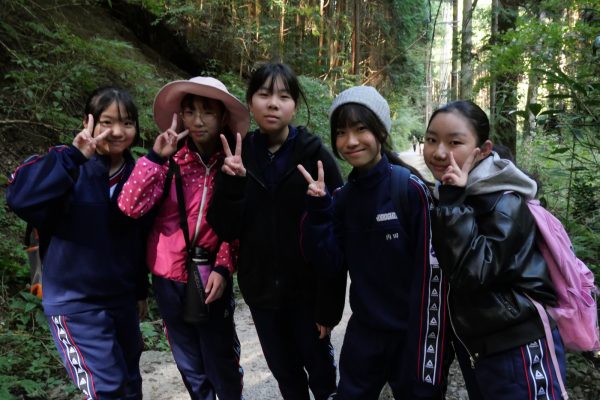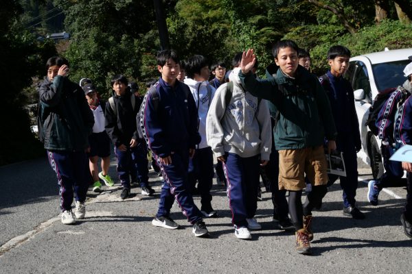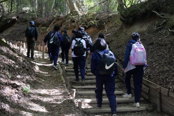 いきなり急勾配から始まる登山でしたが、生徒たちは大きな声で励まし合いながら、和気あいあいと登っていました。