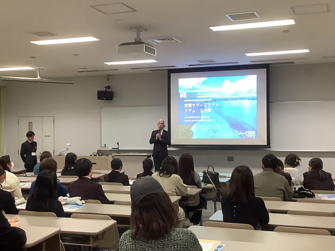 2026年2月7日(土)午後に本館5階 第1視聴覚教室 で,説明会を行いました。生徒保護者さま約40名の参加で,皆さん熱心に聞いていました。2026年8月2日(日)〜9日(日)グアム8日間のプログラムです。