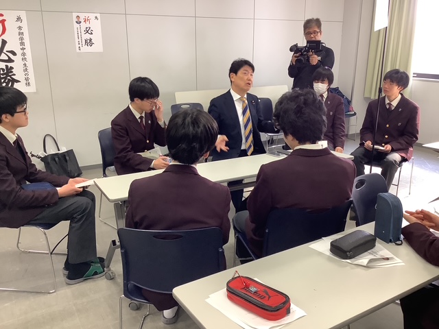 中学卒業前の生徒たちに「少しでも選挙や政治に関心を持ってほしい。現実の政治的課題を把握し、深く考え判断する力もつけて欲しい。」そういう思いから今年も校内で「15歳からの主権者教育 ~模擬選挙(投票)から考えよう日本の未来~ 」をテーマに模擬選挙を実施しました。