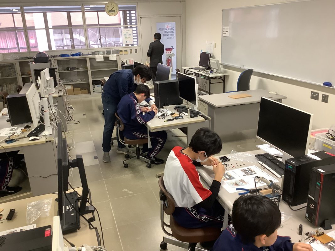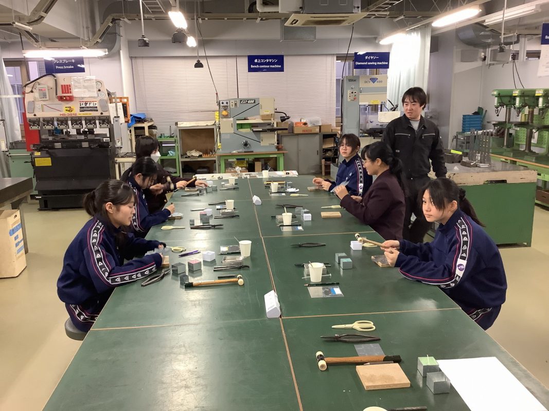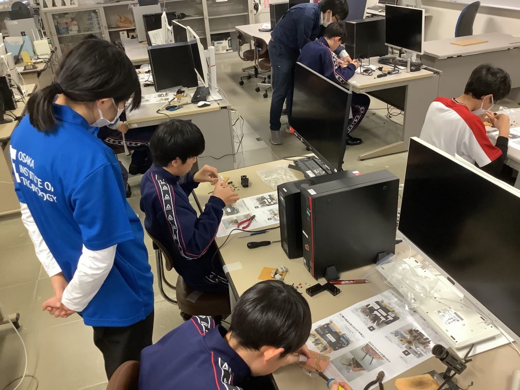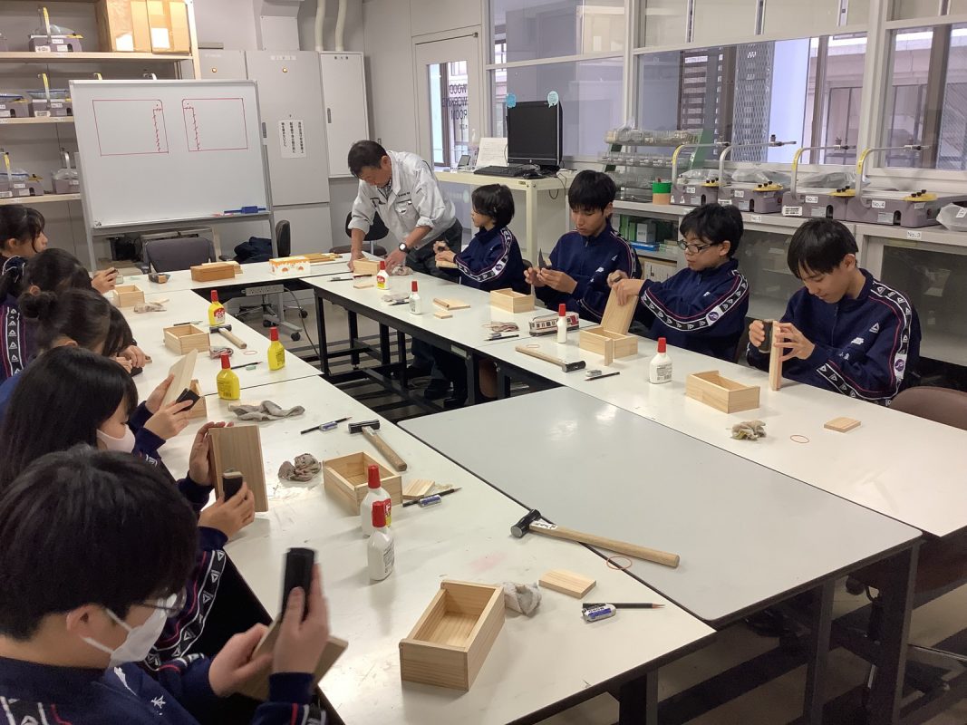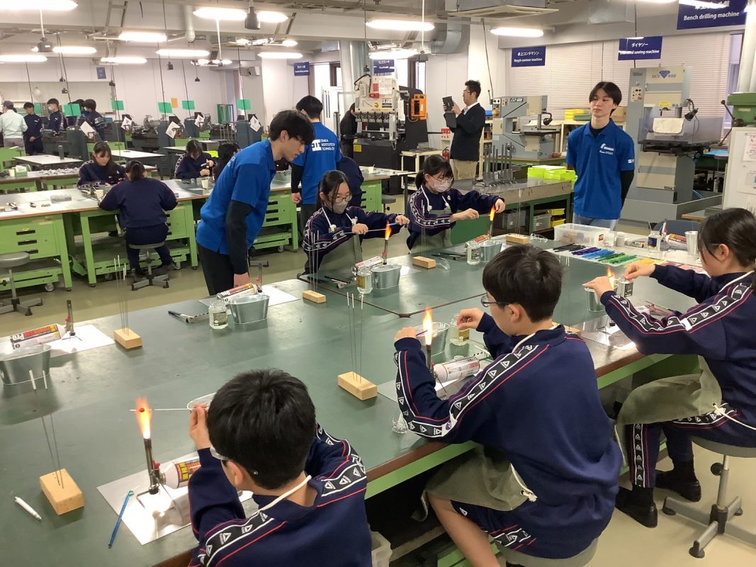 2026年2月16日(月)大阪工業大学のものづくりセンターでの工作とモノラボ見学を行いました。大学の機器を使っての工作は初めての経験で,生徒たちは真剣に取り組んでいました。モノラボ見学では,鳥人間コンテストの実機制作現場を見せてもらったり、ロボットコンテストの各種ロボットの見学,ソーラーカーレースに使われた機器など興味を持って見学していました。