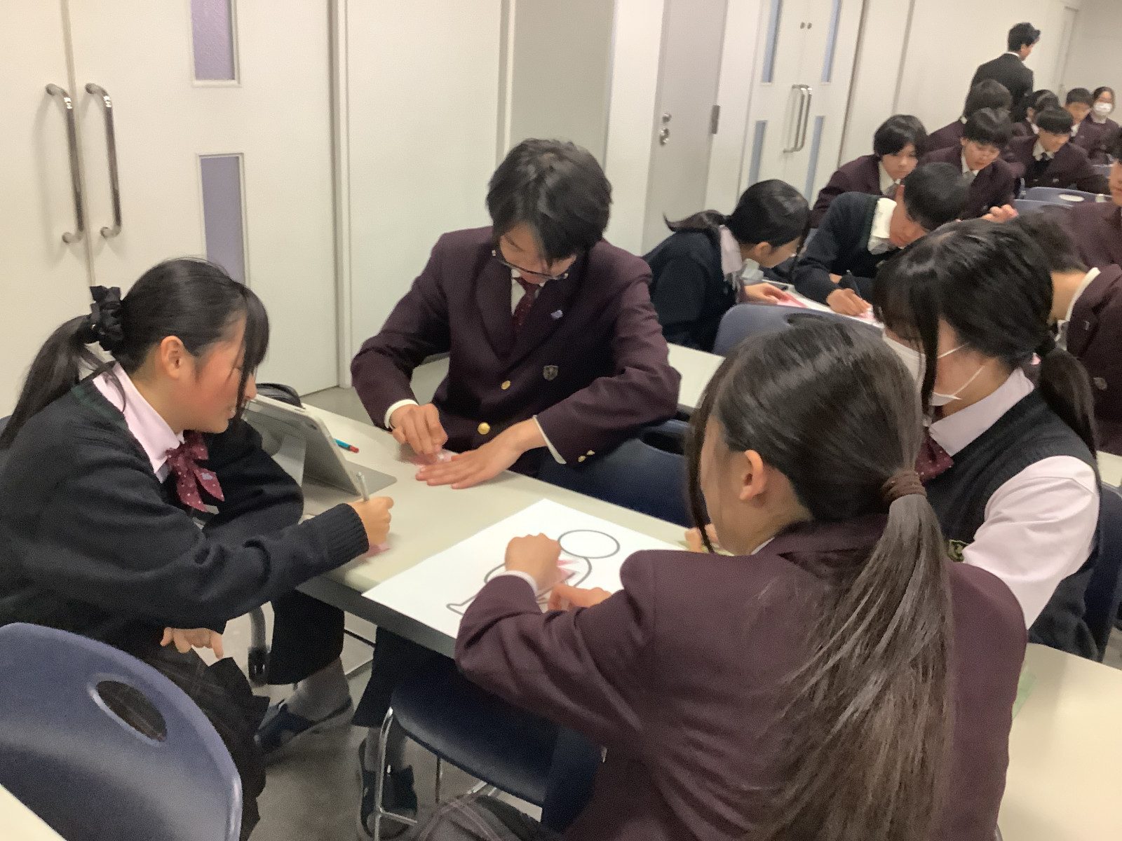 前半はグループワークを行い、「怒り」や「喜び」を感じたとき、自分の体にどのような変化が起きるかを話し合いました。生徒たちは付箋を使いながら、「鼓動が速くなる」「顔が熱くなる」といった意見を出し合い、感情が身体症状として表出する仕組みを共有しました。
