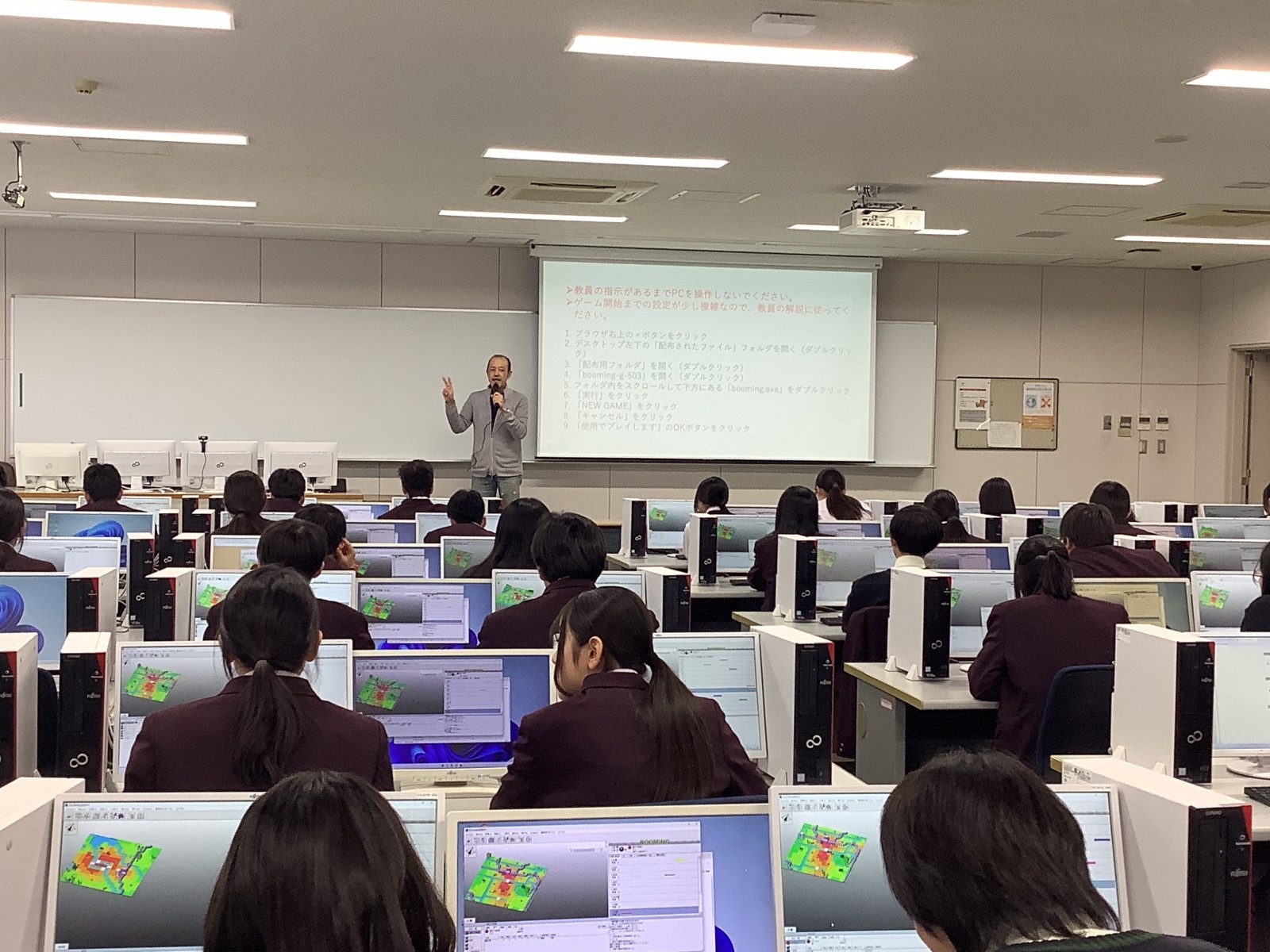 摂南大学経済学部の植杉先生に「君のアイディアで大阪の街を育てよう」というテーマのもと、コンピューターソフトを使って街づくりの授業を実施していただきました。