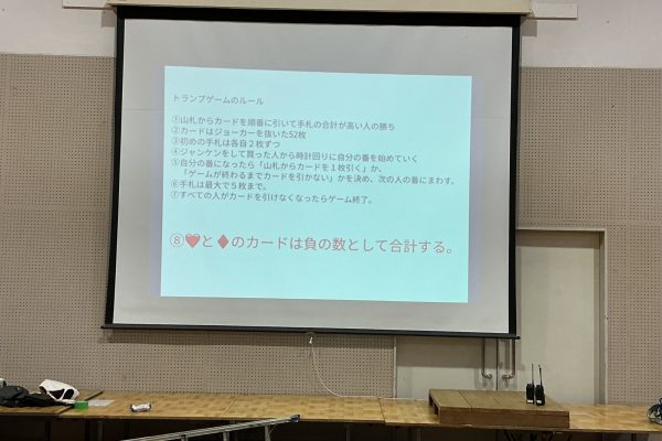 開校式の後はオリエンテーリングや頭を使ったトランプゲームを行いました。 さまざまな活動を通してクラスや学年の仲がさらに深まった気がします。 夜も活動は続きます。 いい形で1日目を終えたいと思います。