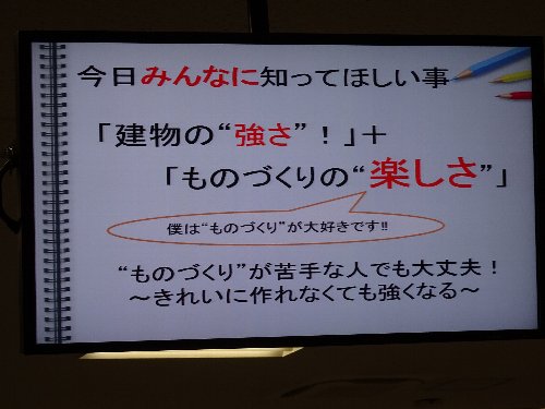 中学1年生が「Josho Career-Up Challenge」中大連携プログラム を午後から体験しました。今回は、毎年好評の摂南大学理工学部建築学科の池内教授と建築防災研究室の学生の皆さんに来ていただき、「ストローと紙で強い建物を作ろう!」をテーマに、厚紙とストローで作った建物の模型にストローを補強して、2kgのペットボトル何本まで乗せることができるかの実験を、研究室の学生の皆さんに手伝ってもらいながら挑戦しました。建築学科とは、社会に対して、自分以外の人に対して、「安心できる素敵な建物・空間を作って渡す」ために必要なことを学ぶところ、建物の強さについて、建物の補強、耐震・制震・免震構造などの説明を受けた後、最後に社会に対して、皆さん自身が「何か」をできる人になるために、中学・高校では、とにかく一生懸命、頭と体を動かして欲しいとエールの言葉を頂戴しました。生徒たちが楽しんで取り組めたのが何よりでした。何事にも興味を持ち、積極的に学んで挑戦する生徒に育って欲しいと願っています。