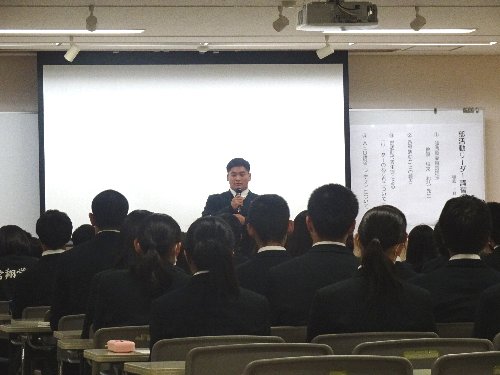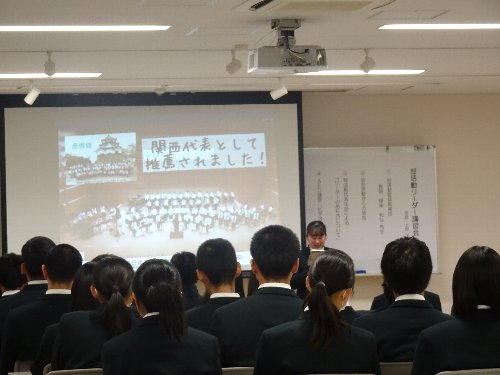 部活動(部・サークル・同好会)に所属する生徒(リーダー)に自覚を促しその行動に誇りを持たせることを目的に、ほとんどの部の主将などが交替しているこの時期に、今年2回目の部活動リーダー講習会を実施しました。各部・サークルの代表から現状報告をした後、3年生のラグビー部主将より「リーダーのあり方について」と題して、後輩たちに向けて自分の経験を踏まえての話をしてくれました。新たな主将や副主将にとって、参考になったのではないでしょうか。最後は保健主事よりAED使用についての話を聞いて閉会しました。