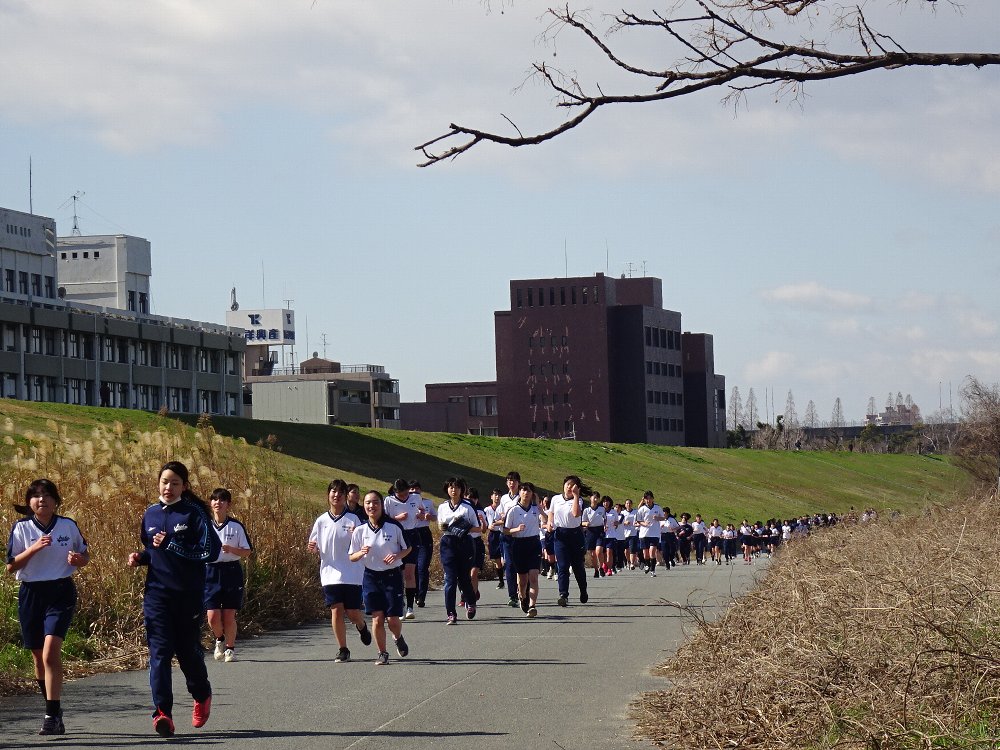 今日は、高校3年生を除く中高生全員が参加するマラソン大会でした。気温が低いなかでの実施でしたが予報よりは天気もよく、高校男子はおよそフルマラソンの約4分の1(10.5km)、高校女子は約5分の1(8.6km)、中学生は男女とも約8分の1(5.3km)の距離をリタイアする生徒が極少数いたほかは、ほとんどの生徒が走りきり、大きな事故もなく予定通り無事終了することができました。淀川河川敷は、マラソンをするには打ってつけの環境で、列をなして多くの生徒が走っている光景は壮観で、河川敷に隣接する本校ならではの光景です。皆さん、今日は寒いなか大変お疲れさまでした。